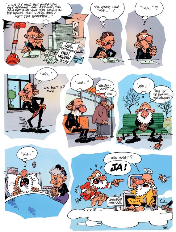 Het goddelijke duo Stuf en Janry komt hoog uit de hemel terug om ons de nieuwe avonturen te vertellen van de beroemdste portier uit de stripwereld: Sint-Pieter. Tussen twee pagina's van Kleine Robbe door blijven Janry en Stuf met het grootste plezier verslag doen van de humoristische avonturen van Sint-Pieter en Satan... en van de duivelse gebeurtenissen in het leven ná het leven. Maar die arme Sint-Pieter moet wel van 's ochtends vroeg tot 's avonds laat de hemelse helhond spelen ter bewaking van de hemelpoort. Vandaar dat hij voor de zoveelste keer te laat komt voor zijn potje biljart. Het zal hem weer 'ns een rondje kosten. Tenzij Lucifer als goede buurman hem een handje komt helpen ...