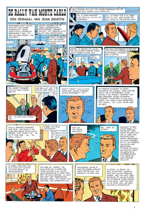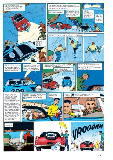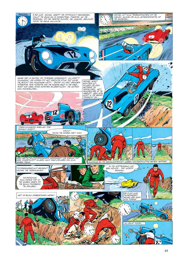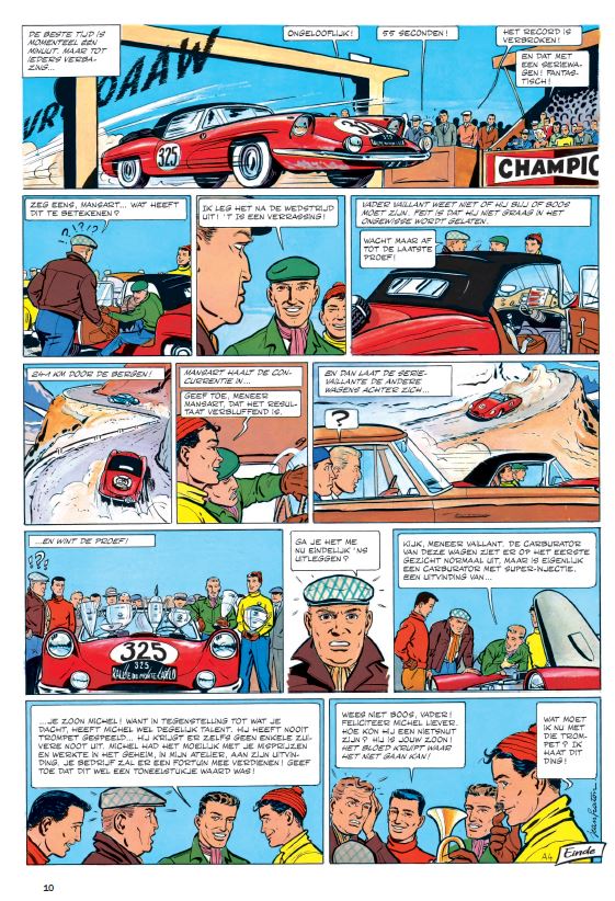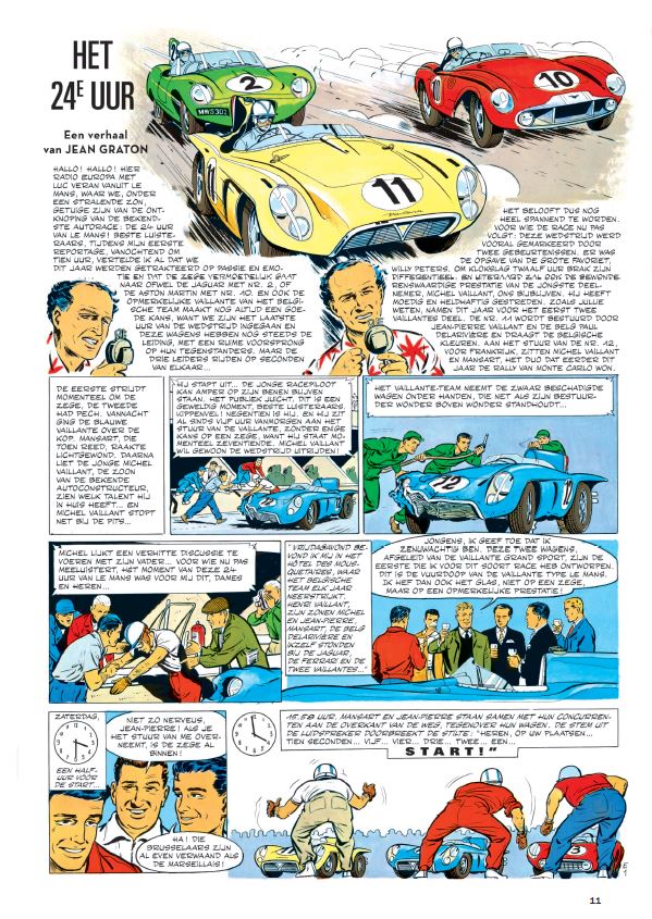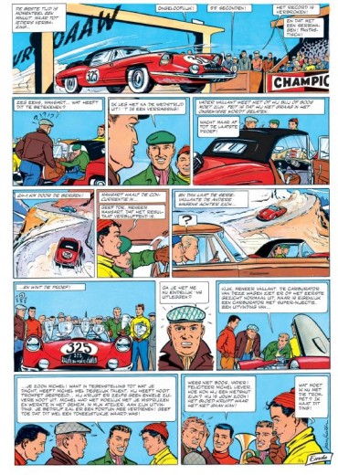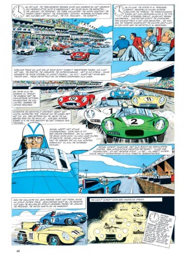 Score moyen 4 / 5We waren sceptisch. In onze ervaring waren korte verhalen meestal opvullertjes voor speciale themanummers of pocketversies van Robbedoes, Kuifje, Pilote, Eppo of andere weekbladen. Een tussendoortje. Leuk om te lezen, maar al vergeten na vijf minuten. Gemakkelijk geldgewin ten koste van de stripliefhebbers die alles over hun held/heldin willen hebben, was dan ook de gedachte toen we dit album met oude korte verhalen van Michel Vaillant ter hand namen. Een halfuurtje later moesten we echter toegeven dat we hier de bal keihard misgeslagen hadden. Dit album is zeer verzorgd opgesteld. Niet minder dan tien korte verhalen (de meeste van vier bladzijden) en een leuk dossier over een fan (Marcel Sylvand) die honderden uren besteedde om op basis van een oud Datsun 260 Z-chassis erin slaagde om een adembenemend mooie blauwe Vaillante Le Mans GT na te bouwen. Respect! Vijf korte verhalen zetten nogmaals de gekende karaktertrekken van Michel in de verf: camaraderie, onverzettelijkheid, edelmoedigheid,... We krijgen ook een niet vertaald verhaal gesponsord door schoenen Garbel en een verhaal over een ouder wordende racepiloot die door Michel met de voeten op de grond gezet wordt. Tot slot is er ook het twaalf bladzijden lange Zijn Mooiste Overwinning waarin Michel, deelnemend aan Le Mans, verneemt dat zijn zoon Patrick geboren is. Beetje klef, maar Jacky Ickx in de Martini Porsche is van de partij en dat maakt alles goed. Dus: waar voor je geld en met een diepe VROOAAR kijken we uit naar deel 2, Seventies. JOHAN DECLOEDT ( bron SSZ)