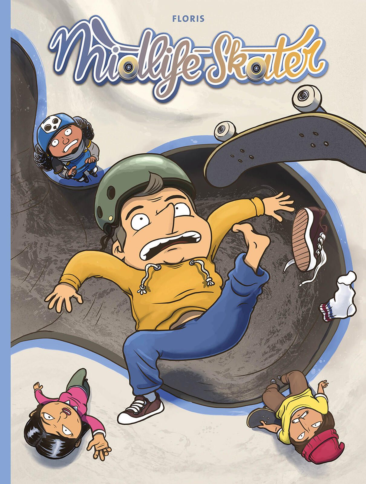 loris De Smedt publiceert bij Syndikaat al de gagreeks Kapitein Ansjovis. Midlife-skater is een one-shot dat meer voor veertigplussers geschikt is... vooral voor wie zelf met een midlifecrisis kampt. Maar daar kan ook mee gelachen worden. 'Midlife-skater is het doldwaze verhaal van een veertiger die naar een nieuwe stad verhuist, en aan een nieuwe, weinig creatieve bureaubaan in een metaalbedrijf begint. Zowel letterlijk als emotioneel verloren, en bij gebrek aan een creatieve uitdaging en vrienden, besluit hij voor het eerst sinds zijn kindertijd terug te gaan skateboarden. Letterlijk met vallen en opstaan leert hij de nieuwe wereld van het skateboarden kennen, en zal hij zijn baas, skaters, robotwindmolens en allerlei mythische figuren trotseren om niet alleen te leren skateboarden, maar ook zijn eigen skateboard te ontwikkelen, en een nieuwe betekenis aan zijn leven te geven.'