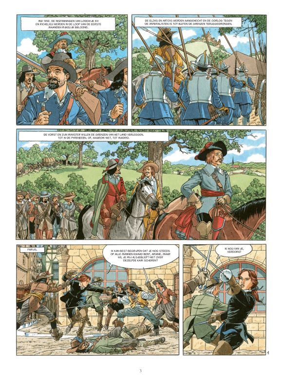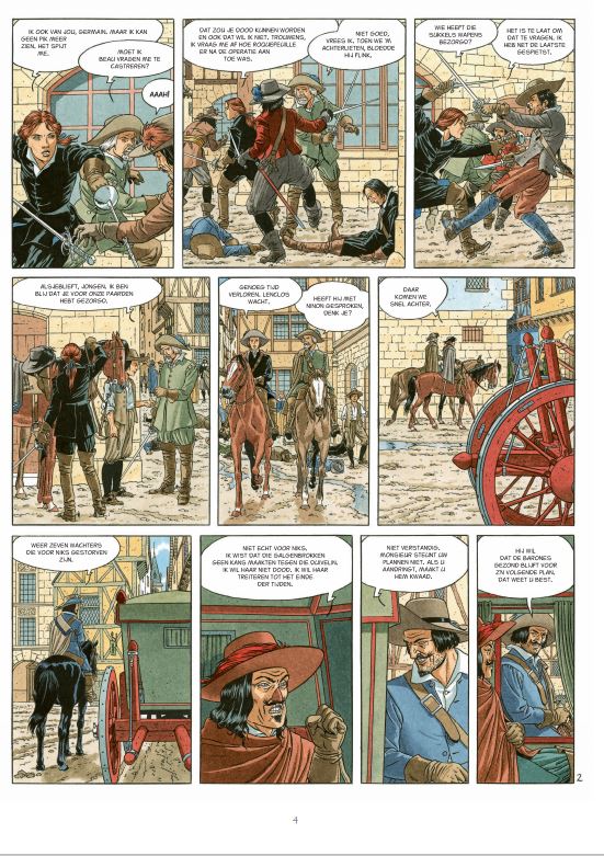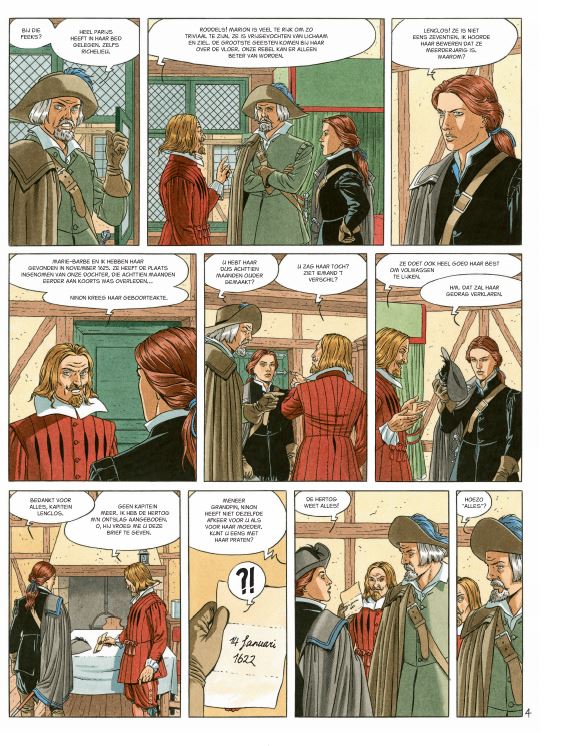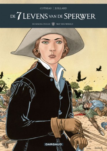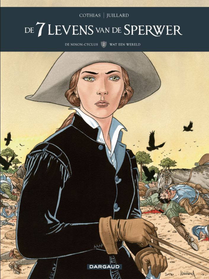liefhebbers van het werk van Juillard kunnen met het volgende artbook hun vingers aflikken. een waar collectorsitem met meer dan 317 pagina's schetsen die je laten inkijken in de privécollectie van de auteur. = Juillard-carnets secrets Juillard Tekenaar Juillard tekende ook volgende stripverhalen 1. Arno 2. Blake en Mortimer ( enkel delen) 3. Lena 4. Wuivende Veder De 7 Levens van de Sperwer Samen met de spin-off méér dan 2 000 000 albums verkocht in Frankrijk en omliggende. Naast de hoofdreeks zijn er ongeveer 6 spin-off die jammer genoeg niet allemaal vertaald werden. De 7 levens van de Sperwer, die in 1983 gestart werd in de collectie VECU. Collectie Vecu bevatte allemaal historische verhalen en deze collectie bij glenat was ook gebonden aan een maandblad waarbij héél wat historische achtergrond dossier te lezen waren. Deze collectie was een schot in de roos bij Glénat en plaatste de historische strip in de kijker. In die reeks starten ook héél wat gekende klassiekers zoals : • De torens van Schemerwoude • De Dwaas van de Koning, • Arno • Dampierre • Het Ijzermasker • … Gebaseerd op Roodmasker, jeugdreeks die in 1980 het verhaal vertelt van Ariane, die gemaskerd haar oom imiteert en die later haar vader bleek te zijn. De eerste 3 verhalen zijn van de hand van Juillard die dan de volgende 7 delen laat tekenen door Venanzi. Juillard kende hiermee duidelijk zijn doorbraak, samen met Cothias legde hij hiermee de basis van een reeks die tot op heden nog altijd zeer populair is en die de periode vanaf 1601 tot 1643 in Frankrijk duidelijk beschrijft. De periode van Hendrik IV, Lodewijk XIII, Sully, Marie de Médicis, Ravaillac, Gaston van Orleans, Concini, Richelieu, Vincent de Paul,…. Daarna volgde nog de spin-off reeksen in dezelfde collectie van Roodmasker (1620), De dwaas van de Koning ( 1622), Ninon Secrète ( 1648) en Coeur Brulé ( beiden werden niet vertaald ), Het IJzermasker ( 1658) werd wel nog vertaald. De eerste 7 delen van 1982 tot 1991 bevatten de eerste cyclus. In 1995 hervatte beide heren de samenwerking voor een tweede cyclus van 4 delen onder de naam Wuivende veder die dan in 2014 terug heruitgebracht werd in het Frans onder de reeks De 7 levens van de Sperwer, tweede cyclus. Deze cyclus bevat 4 delen. Ook in 2014 werd de derde cyclus aangevat maar door een kortsluiting tussen tekenaar en scenarist over de wending en dan vooral over Molière zijn toedracht werd deze cyclus pas verleden jaar (6 jaar later) terug opgevist. En dit vooral omdat Cothias zich bij de wensen van Juillard had neergelegd. Wel wordt dit het laatste album van Juillard (72) want de andere twee delen en ook slot zullen getekend worden door Milan Jovanovic ( Ars Manga, De Slang onder het IJs, Jason Brice, Carthago ). Deze is reeds gestart met het tekenen en het derde album zou in 2022 verschijnen. Het 15 de en ultieme album zal stoppen bij het opstarten van Molière zijn toneelgezelschap. inhoud 1642. Na een lange reis over de Atlantische Oceaan komen Ariane de Troïl, Beau en Germain aan in Parijs. Het is geen prettig thuiskomen: het huis van Ariane is leeggeplunderd en het drietal moet een nieuw onderkomen vinden. De situatie wordt er niet beter op als de burggraaf van Roquefeuille Ariane, vijftien jaar nadat zij hem letterlijk bij de neus nam, uitdaagt voor een duel. Na de zevendelige cyclus De 7 levens van de sperwer (Glénat) en de daaropvolgende vierdelige cyclus Wuivende Veder (Dargaud) is dit het tweede deel van de nieuwe, derde cyclus van deze historische avonturenklassieker! Na de zevendelige cyclus De 7 levens van de sperwer (Glénat) en de daaropvolgende vierdelige cyclus Wuivende Veder (Dargaud) is dit de start van een nieuwe, derde cyclus van deze historische avonturenklassieker: 15 jaar later!