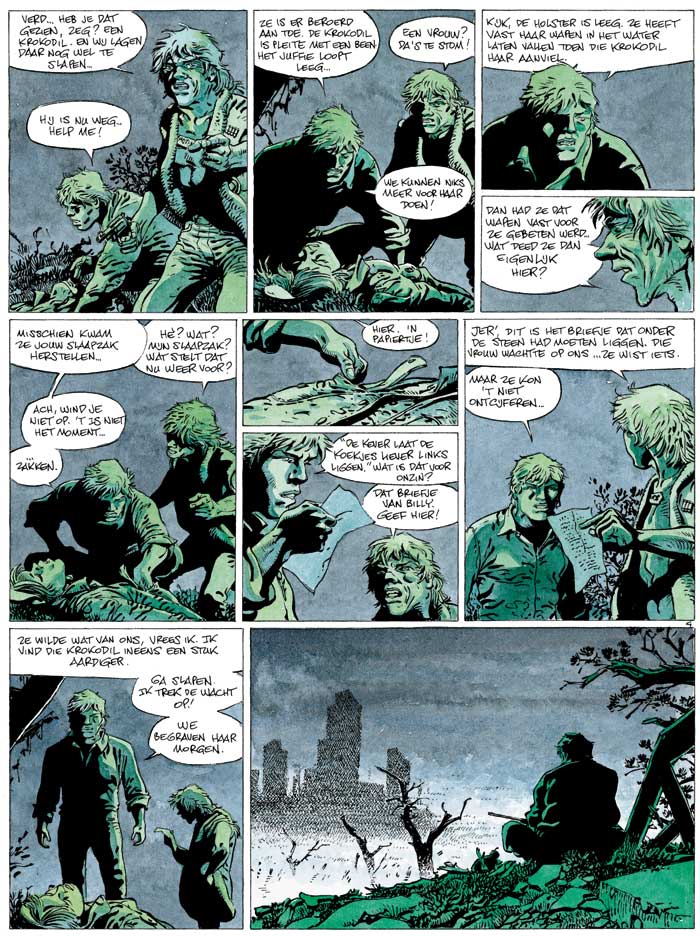 Een zak diamanten terughalen uit een ondergestroomde stad. Waarom ook niet? Kurdy en Jer' kunnen zich moeilijker klussen bedenken. In die stad duiken naar sporen terwijl er krokodillen in de buurt rondzwemmen? Ach, voor een fortuin aan diamanten wil je wel eens iets extra's doen. Het wordt pas link als blijkt dat ook andere kandidaten naar de stenen op zoek zijn. Had Billy niet verteld dat verder niemand van de zaak op de hoogte was? Tja, als je vrienden al niet meer kunt vertrouwen ... Hermann zet zijn libertaire helden neer in een spectaculair decor: een ondergelopen stad. De cynische humor van Hermann is lekker droog gebleven ...