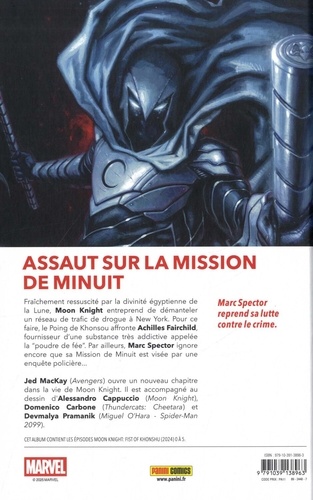 Après les événements de BLOOD HUNT, Marc Spector revient d'entre les morts. Ce n'est pas la première fois, mais cette résurrection marque-t-elle un changement profond chez lui ? Et Moon Knight aura-t-il le temps de souffler avant de faire face à de nouvelles menaces redoutables ? Au risque de vous spoiler : la réponse est non. L'omniprésent Jed Mackay (X-Men, Avengers) reste aux commandes de cette nouvelle série Moon Knight, marquée par le retour de Marc Spector dans le rôle-titre. Le personnage, désormais plus populaire que jamais, a bénéficié d'un regain d'intérêt grâce à la série Disney+ qui lui a été consacrée.