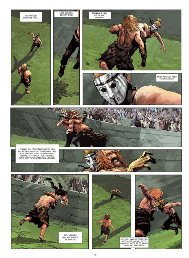 De vijf prachtige covers van deze reeks zijn ware eyecatchers. Het magische zwaard Excalibur is bedoeld om te verenigen, niet om vernieling te zaaien. Tovenaar en druïde Merlijn maant koning Uther dan ook aan tot kalmte. Zijn beloning zal dan Excalibur zijn. Maar priester Patricius blijkt het volgende probleem en die vindt toch ook wel heel wat bondgenoten. We maken ook kennis met een heel bijzondere techniek om onverwoestbare zwaarden te smeden. Ze worden gekoeld in het lichaam van de vijand! (De Damas-techniek) Gorloix, Heer van Cornwall, reageert wel heel streng wanneer hij merkt dat zijn vrouw Ygerne (moeder van Morgane) de weg naar het Christendom niet kan vinden. Uther Pendragon besluit drastisch in te grijpen. Maar Uther sneuvelt en Merlijn begraaft Excalibur in een rots. De volgende man die erin slaagt het zwaard eruit te krijgen zal koning van Engeland worden. Maar ook de oude 'gehoornde' Keltische God Cernunnos gooit roet in het eten. Religies die vreedzaam naast elkaar bestaan, het heeft nooit gewerkt. Ondertussen staat Merlijn voor een onmenselijke keuze. Kiest hij voor zijn kleindochter Morgane of voor zijn kleinzoon Arthur? Zelfs voor een magiër is dit geen klein bier. Ook Avalon, het mythische eiland in de Britse wateren, komt in gevaar.