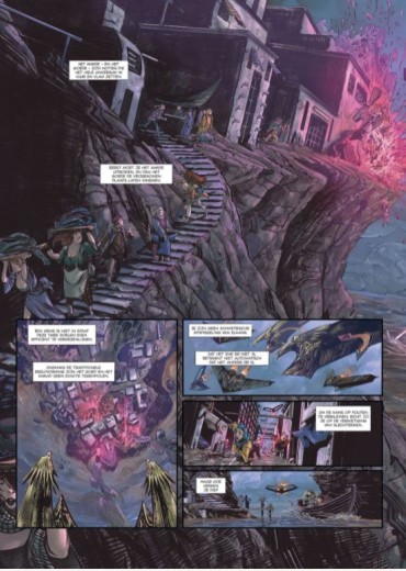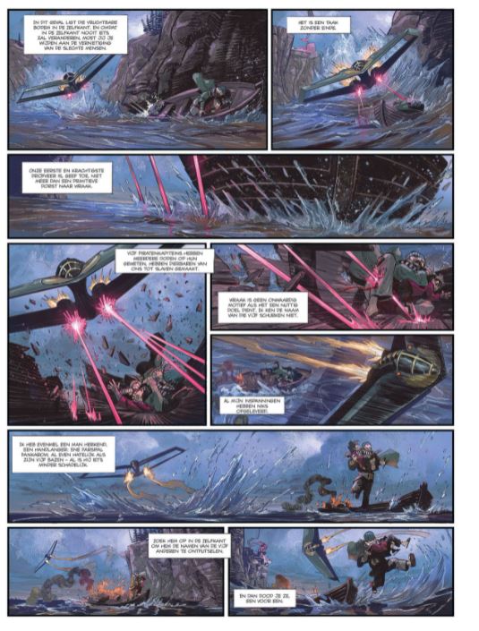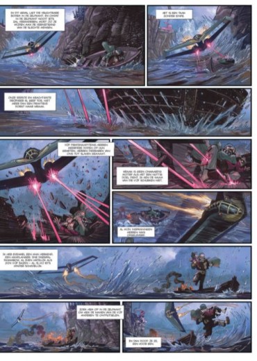 Score moyen 4 / 5Sciencefiction met een hoofdletter S Kirth Gersen is nog een knul van 9 jaar wanneer de Aarde aangevallen wordt door vijf piratenkapiteins en hun vloot. Met de hulp van zijn grootvader kan Kirth aan de dood ontsnappen en de Aarde ontvluchten. Zijn ouders zijn minder fortuinlijk. Zij sterven tijdens de aanval. Wie de slachting overleeft, wordt slaaf van de piratenkapiteins, ook wel de Duivelsprinsen genoemd. Kirth wijdt de rest van zijn jeugd aan het ontwikkelen van de benodigde gevechtskills. Zijn missie: de Duivelsprinsen een voor een opsporen en laten boeten voor hun misdaden. Eerste op de lijst is Attel Malagate. Een wrede slechterik pur sang. Kirth ontmoet Lugo Theebalt, een plaatsbepaler oftwel ontdekkingsreiziger die op zoek gaat naar lucratieve onontgonnen werelden en de coördinaten van deze werelden nadien per opbod verkoopt. Een recente, door Lugo ontdekte planeet heeft de interesse van Malagate gewekt. Lugo wordt zwaar onder druk gezet om de draad (opslagmedium met informatie) aan Malagate te overhandigen. Lugo weigert, wat zoveel als zijn doodvonnis betekent. Alvorens het loodje te leggen, geeft Lugo de informatie aan Kirth door. Het is nu een kwestie van de opdrachtgever van Lugo te zoeken. Als Kirths vermoeden klopt, zal de zoektocht hem rechtstreeks naar Attel Malagate leiden. In 1964 verscheen het eerste deel van de sciencefictionsaga De Duivelsprinsen van Jack Vance. De reeks telt in totaal vijf delen en staat bekend als een klassieker binnen het sciencefictiongenre. Elk deel gaat over de jacht op een van de Duivelsprinsen. Jean-David Morvan (Konvooi) heeft als taak dit literaire werk te verstrippen. Het eerste boek, De Sterrenkoning, wordt netjes afgewerkt in twee delen. Dit blijkt ruimschoots voldoende te zijn om een evenwichtig verhaal te vertellen zonder grote bokkensprongen te moeten maken. We moeten eerlijk bekennen nooit het originele werk gelezen te hebben, dus vergelijken doen we hier niet. We rekenen er bovendien op dat Morvan als liefhebber van Jack Vance — hij bewerkte immers al Vance' Tschai - De Waanzinnige Planeet naar een stripreeks — zijn uiterste best doet om de striplezer de best mogelijke leeservaring te bezorgen. De wereld waarin het verhaal zich afspeelt, is een toekomstige hoogtechnologische versie van het universum. De mens zit al lang niet meer vast op Aarde en leeft samen met tal van andere soorten. In tegenstelling tot een utopische versie van de toekomst, zoals die van Star Trek, treffen we hier een nog net iets gewelddadigere versie van onze eigen maatschappij aan. Geld en macht openen zowat alle deuren, alles is te koop. In deze harde en schijnbaar straffeloze wereld vinden we Kirth Gersen terug. Een ware vechtmachine die wraak wil nemen voor het onrecht dat hem als kind aangedaan werd. Zijn methodes zijn minstens even bedenkenswaardig als die van zijn tegenstanders, maar stiekem wensen we hem toch alle geluk toe. Eender welke wereld is veiliger zonder figuren als Attel Malagate, lid van een soort dat de Sterrenkoningen genoemd worden. Wie of wat de Sterrenkoningen dan weer zijn, laten we je graag zelf ontdekken. Morvan sleurt de lezer meteen diep in het verhaal mee. Bij momenten ligt het tempo enorm hoog, zoals we het graag hebben in het sciencefictiongenre, met de nodige actie. Toch steeds met aandacht voor detail en af en toe temporiseren om de lezer het bredere plaatje of achtergrondinformatie te verschaffen. Een stevige kluif overigens die wel de nodige aandacht van de lezer vergt. Over het tekenwerk van debutant Paolo Traisci kunnen we kort zijn... Wauw... De virtuositeit en liefde voor het genre spat van elke pagina af. Traisci’s tekenstijl is een smeltkroes van verschillende stijlen. Realistische Franse school, gecombineerd met manga-invloeden en een vleugje Don Lawrence. Het resultaat is een frisse, dynamische tekenstijl die het verhaal perfect ondersteunt. Fabio Marinacci doet als inkleurder eveneens zijn duit in het zakje om de sfeerschepping te helpen bepalen. De juiste ingrediënten en een vleugje magie leveren soms prachtige resultaten op. Verstrippingen van literaire werken zitten in de lift. Met De Duivelsprinsen heeft uitgeverij Daedalus naar ons gevoel een pareltje in handen. Sciencefiction met een hoofdletter S, en wat ons betreft een van de betere stripverhalen van het jaar!