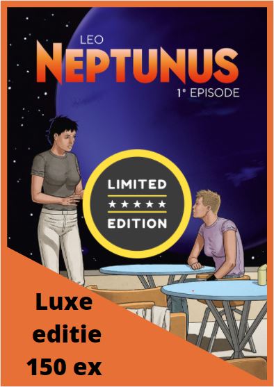 LAATSTE EXEMPLAAR Luxe (?) versie van Stribbel op 150 ex met gesigneerde prent. Nieuwe reeks van Leo in de werelden van Aldebaran. Dit nieuwe tweeluik wordt net iets anders dan de andere delen uit de reeks de werelden van Aldebaran. In tegenstelling tot de andere reeksen speelt dit avontuur zich merendeel af binnen het ruimteschip. het tweeluik zal zich afspelen over twee delen van 60 pagina's. en goed nieuws want er komt hiervan waarschijnlijk een vervolg in 5 delen naar traditie van de andere reeksen. Neptunus werd nu uitgekozen omdat deze planeet het verst is gelegen van onze planeet. Maar ook voor de mooie naam en kleuren. maar onze helden uit het verhaal zullen nooit op de planeet gaan. In de vorige reeksen konden we verschillende bizarre dieren ontmoeten maar in dit eerste deel niet, pas in het tweede deel komen deze terug in beeld. Hier krijgen we wat meer robots te zien. het is wel aangeraden dat je de eerste delen gelezen hebt want er komen nogal wat zaken in voor die verband houden met de vorige delen zoals de matrix die terugkomt enz... voor de fans van de auteur en de werelden rond deze reeks is er goed nieuws want er komt nog een vervolg op de reeks Kenya samen met Corbeyran. uiteraard kunnen we nog het vervolg lezen van Europa met Janjetov. en een volledige nieuwe reeks die ' MORGEN' zal heten ' DEMAIN' ( is de oorspronkelijke titel) met striptekenaar Alloing die we kennen van de reeks Robert Sax een nieuwe detective reeks die zich afspeelt in het Brussel van de jaren 60! Nog veel om naar uit te kijken dus. korte inhoud van dit deel: Drie jaar na de avonturen die Kim en haar metgezellen hebben beleefd, studeert Manon, terug op aarde, af als Special Agent van de VN. Elders, in de ruimte, kijkt een station in een baan rond de aarde bezorgd toe hoe een ruimteschip van onbekende oorsprong plotseling boven onze planeet tot stilstand komt. Vreemde opschriften in het Engels sieren de toegangsdeur van de luchtsluis van het schip. Omdat ze geen contact kunnen maken met de ufo, roepen de VN de Special Forces in. Manon wordt samen met een elitetroep op deze gevaarlijke missie gezet. Haar doel is om in contact te komen met het schip en het vervolgens binnen te dringen. Maar eenmaal aan boord gaat niets zoals gepland en loopt de situatie al snel uit de hand... Gelukkig voor Manon kan ze rekenen op de hulp van een expert in levensgevaarlijke missies: Kim Keller.'