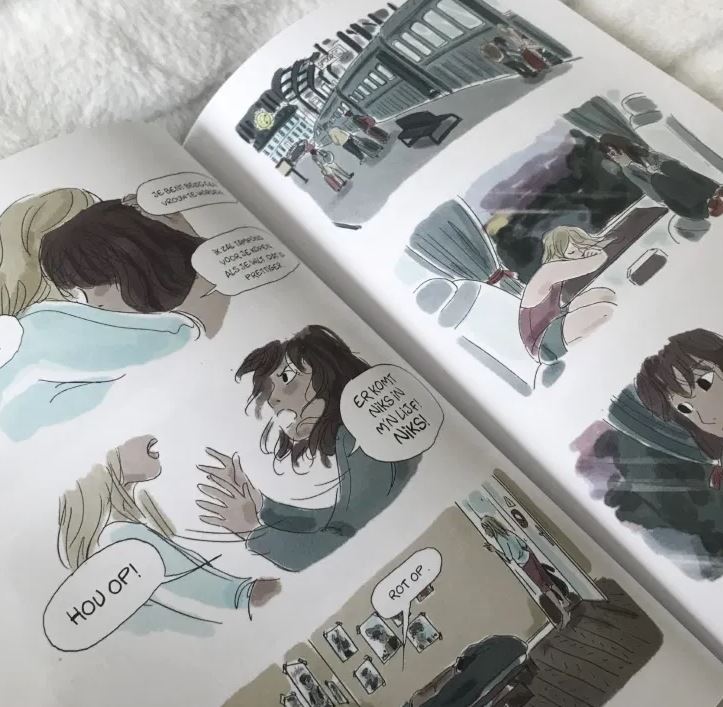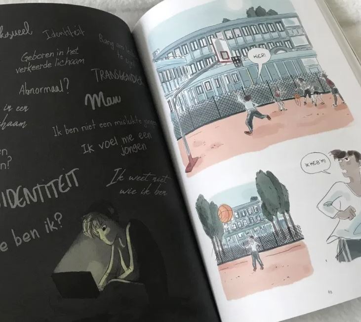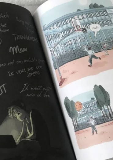 Nathan belandt in de puberteit, een tijd waarin zijn lichaam niet vormt hoe hij is. Zijn lichaam krijgt borsten, terwijl hij dat totaal niet bij zichzelf vindt passen. Zijn omgeving ziet hem als een meisje, maar dat wil hij niet zijn. Hij heeft moeite met zijn identiteit, maar zijn naasten zullen hem accepteren zoals hij is. Querido Glow is een imprint dat zich richt op verhalen waarin diverse personages aan het woord komen. Personages van kleur, personages met een andere seksualiteit of geslacht, Querido Glow probeert veel verschillende stemmen een podium te geven. Noem me Nathan is een graphic novel over een transgender jongen en de zoektocht naar hemzelf. Weet dit waargebeurde verhaal een goede indruk achter te laten op de lezer? Noem me Nathan is een realistisch verhaal waarin een jongen merkt dat zijn lichaam zich niet vormt zoals hij wil. Vanaf kleins af aan geeft familie hem meisjesspullen en kleding, terwijl hij dit totaal niet wilt. Hij voelt zich onbegrepen, want hij wil helemaal geen meisje zijn. De link naar transgender zijn is nog niet gelegd, waardoor je merkt hoe zwaar Nathan het heeft. Zijn familie weet geen raad met hem en zien hem nog als meisje, terwijl hij juist kort haar wilt hebben, zonder borsten wilt rondlopen en verliefd is op meisjes. Hij keert helemaal in zichzelf omdat hij zo in de knoop zit, wat hartverscheurend is om te zien. Gelukkig weet hij steeds meer zichzelf te vinden en is het hartverwarmend om te zien dat zijn familie en vrienden hem accepteren en hem steunen in zijn transitie. Nathans verhaal is aangrijpend en weet je meer inzicht te geven in het leven van een transgender jongen. Ik hoop dat het de ogen kan openen voor veel mensen die juist weinig weten van transgenders en daar soms verkeerde uitspraken over doen, want transgender jongeren hebben een lange weg die ze moeten bewandelen. Nathan geeft een hoopvol verhaal waarin de acceptatie hoog staat, wat ontzettend mooi is om te zien. Deze verhaalvorm is erg passend bij een verhaal zoals deze, het kan een erg prettig verhaal zijn voor jongeren die in de knoop zitten met zichzelf.