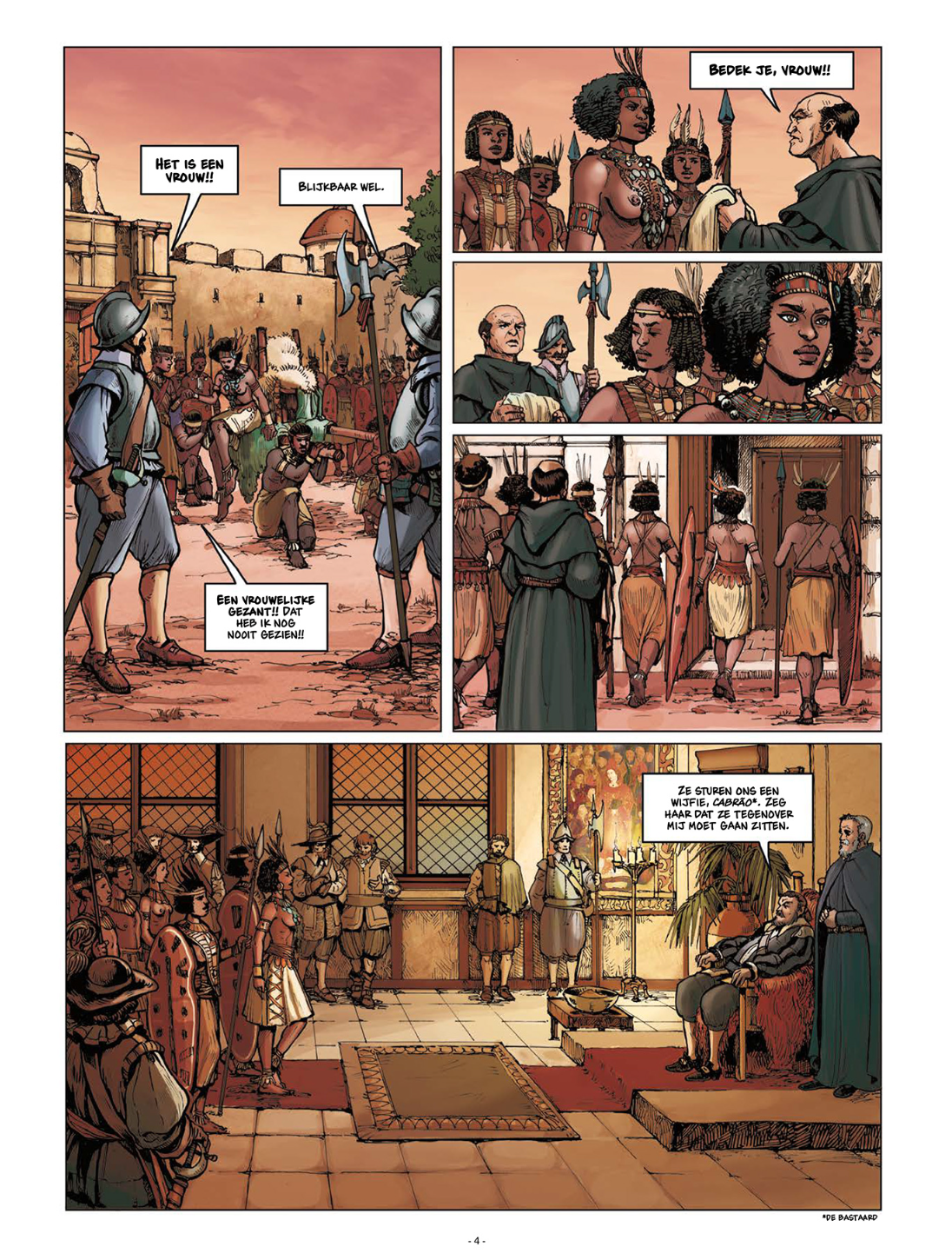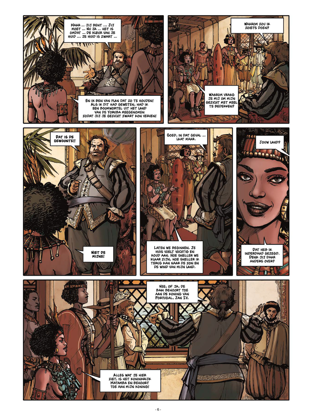 1617, Afrique de l’Ouest. Ngola Mbande Kiluanji, roi du Ndongo, meurt. Son fils, Ngola Mbande, lui succède, mais il apparaît rapidement qu’il n’est pas de taille à résister aux attaques des Portugais, déterminés à annexer son royaume. Désespéré, il envoie une délégation à Luanda, quartier général des troupes portugaises, afin de négocier un traité. Il place à la tête de cette mission sa sœur, Nzinga Mbande, qui se révèle être une diplomate hors pair. À partir de ce moment, le destin du royaume repose entre ses mains…