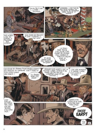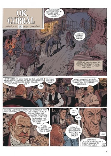 De Tombstone, d'OK Corral, la légende n'a retenu qu'un fameux duel collectif qui a vu, un matin de 1881, quatre célèbres malfrats, le clan Clanton et McLaury, tomber sous les balles des non moins illustres frères Earp épaulés par Doc Holliday. Mais ce fut loin d'être le seul règlement de compte qui eut pour cadre, ce jour-là, le mythique bled perdu de l'Arizona, situé à quelques miles de la frontière mexicaine. Du moins à en croire les dernières aventures de Blueberry, décidément toujours dans les parages lorsque l'Histoire s'écrit. Non pas qu'on puisse reprocher à cette éternelle tête de lard d'être allé au-devant du danger et des ennuis. Une fois n'est pas coutume, ce sont plutôt les pépins et les embrouilles qui sont venus à lui. Depuis que celui qui se fait désormais appeler Mister Blueberry semble définitivement avoir tourné le dos à l'armée et s'être résigné à l'idée que Chihuahua Pearl ne sera jamais la femme de sa vie, il s'est installé, désabusé mais plus intransigeant que jamais, à Tombstone. Plus précisément au Bird Cage, lieu mal famé faisant un peu office d'hôtel, pas mal de saloon et beaucoup de tripot, dont il ne quitte plus les tables de jeux. Il faut dire que Mike Blueberry, démobilisé au propre comme au figuré, peut s'offrir un plaisir inédit : vérifier jour après jour que sa chance insolente ne l'a pas quitté bien qu'il soit repassé, pour la première fois depuis sa jeunesse brisée, dans le camps des nantis. Car Mister Blueberry dispose à présent d'une petite fortune, ce trésor des Confédérés que lui a laissé le président Grant en dédommagement de ses nombreuses années gâchées, de son honneur trop longtemps entâché. C'est donc pour tirer un trait, oublier et se faire oublier que notre anti-héros miraculé est venu se poser à Tombstone. Un élégant préretraité porté sur la bouteille et le cigare, taciturne flambeur goûtant aux joies d'un relatif anonymat dans une ville minière qui compte déjà son petit lot de célébrités : les frères Earp, Wyatt, Virgil et Morgan, qui tentent d'y faire régner la loi, leur copain Doc Holliday ainsi que les notoires hors-la-loi du clan Clanton-McLaury. Et, bien sûr, la vedette du Bird Cage, la brune brûlante Doree Malone, chanteuse-danseuse-entraîneuse au charme et au talent certains. Evidemment, on se dit que dans un tel environnement, notre ex-lieutenant tête brûlée, rétif à toute figure d'autorité, allergique à toute violence gratuite ou intéressée et séducteur malgré lui, ne pouvait pas rester tranquille longtemps. Et pourtant, ce n'est pas son naturel mais son passé qui va le rattrapper. Sous les traits d'un père désireux de venger la mort de son fils suicidé, malheureux perdant d'une partie de poker contre Mike, d'un écrivain débarqué de Boston venu recueillir les mémoires de l'homme qui sauva la vie du Président et d'un valeureux chef indien aux abois qu'il croisa autrefois, Géronimo. De la plus étrange et inattendue des façons, Blueberry est condamné à rebasculer dans l'action. A la fin du premier album de ce cycle entamé en 1995 dont Duels à OK Corral est le quatrième volume, il s'effondre, le corps truffé de plombs. Mort. Ou presque. Au début de l'épisode suivant (Ombres Sur Tombstone), il revient péniblement à la vie. Une divine renaissance qui le verra, pour un bon moment, cloué au lit, materné par la délicieuse Doree. L'occasion rêvée pour enfin se retourner, tirer l'enseignement de son tumultueux passé. Pour que, rétabli, il puisse à nouveau avancer et, surtout, faire éclater la vérité, tenter de sauver la tête d'un brave guerrier injustement abusé et accusé. Ce récit (Géronimo, l'Apache), haletant, haché, sans cesse interrompu par son fragile état de santé, il le confie au biographe bostonien, comblé, terrifié. Tandis que Blueberry revit dans sa tête ses exploits et erreurs passés, autour de Tombstone, les meurtres, les complots et les coups fourrés se multiplient. Gamin ivre de vengeance, tueur à gage aux moeurs de serial killer sérieusement détraqué, puissant homme d'affaires sans pitié, jeune amoureux révolté par l'assassinat de sa fiancée, une troupe de sanguinaires et cupides fanfarons, de fiers et arrogants justiciers et une poignée d'Apaches manipulés : lentement, tous ces individus violents - par nature ou par nécessité - aux intérêts divergents progressent vers une inévitable tragédie. Telle est la trame qui ne cesse de monter en intensité tout au long du terrifant et palpitant Duels à OK Corral. Un étourdissant et sombre western d'action doublé du plus passionnant des parcours initiatiques, une vertigineuse mise en abîme totalement maîtrisée, l'aboutissement d'un des plus longs mais inspirés passages de témoin de l'histoire de la BD. Car comment ne pas voir dans cette mort si symbolique de Blueberry, ce va-et-vient incessant entre le passé et le présent, un monumental hommage à Jean-Michel Charlier, créateur et scénariste de la série jusqu'à sa disparition en 1989 ? En immobilisant temporairement son personnage principal, Jean Giraud lui fait porter le deuil de son co-géniteur de génie, l'oblige à considérer l'existence exceptionnelle et insensée qu'il lui a fait mener, les colossaux vécu et bagage psychique qu'il lui a légués. Et le dessinateur de relever le défi avec brio de s'affirmer plus que digne de poursuivre l'aventure seul, imaginant une intrigue riche, foisonnante et sophistiquée, à l'image de son trait unique, mainte fois imité, et toujours, quarante ans après, en progrès. Le cycle Mister Blueberry, inscrit, dès son titre à double sens (Mister/mystère) et au détour de chaque planche, sous le signe de la dualité (pouvait-il en être autrement de la part d'un homme qui abrite en lui deux dessinateurs accomplis, Giraud et Moebius, aux styles radicalement opposés ? ) est une époustouflante succession d'audaces, tant s