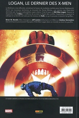 Le Multivers s'est effondré, entraînant la fusion de multiples réalités pour former Battleworld. Parmi ces nouveaux territoires se trouvent les Terres Mortes, une version des Etats-Unis dominée par les plus redoutables super-vilains. C'est là que vit Old Man Logan. Depuis la disparition des X-Men, il s'efforce de se tenir à l'écart des conflits. Cependant, la guerre le rattrape et sa famille est tuée par les neveux de Hulk, ce qui le pousse à ressortir les griffes... Brian M. Bendis (New Avengers), Jeff Lemire (Inhumans vs X-Men) et Andrea Sorrentino (Secret Empire) poursuivent l'épopée d'Old Man Logan dans un monde au bord du gouffre.