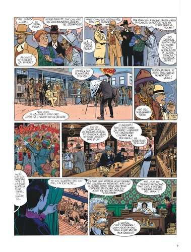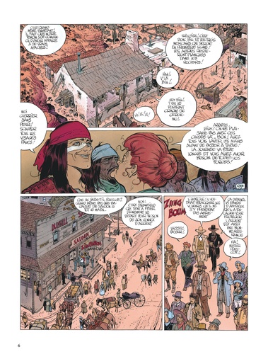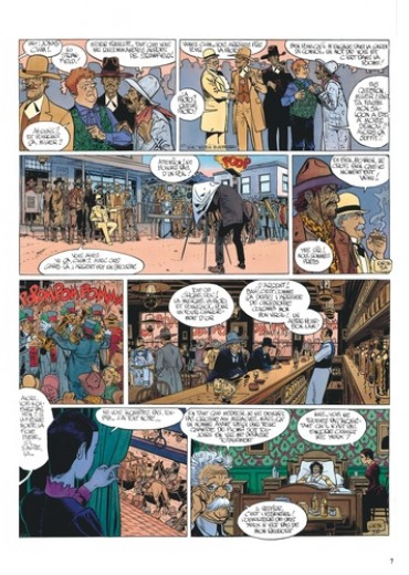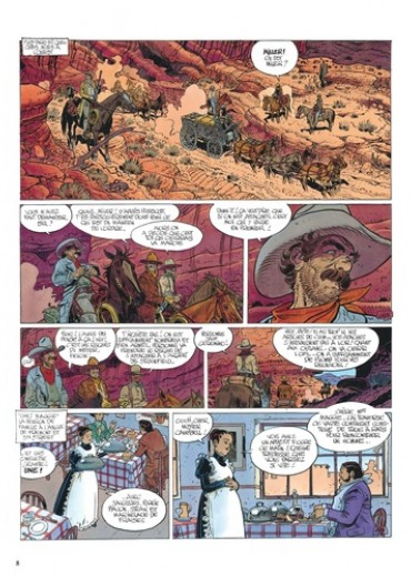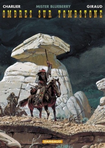 "Un joueur professionnel abattu dans le dos", annonce l'édition spéciale du Tombstone Epitah. Rien que de très banal, à un détail près : le joueur s'appelle Blueberry, une vraie célébrité, d'après le gros Campbell, journaliste à Boston. Mais avec trois balles dans le corps, Blueberry n'est pas mort. Et dès qu'il ouvre un oeil, Campbell se précipite à son chevet pour recueillir ses mémoires. Ca démarre mal : le premier exploit du "héros" de l'Ouest consiste à prendre une biture, vautré dans la boue avec les cochons... Pendant ce temps, Strawfield fête en fanfare le départ pour Tucson de son convoi d'argent, que les Clanton projettent d'attaquer, déguisés en Apaches. Et tandis que l'ombre de Geronimo rôde dans les collines, le drame se tisse : il aboutira au fameux massacre d'OK Corral. Ombres sur Tombstone, qui a fait l'objet d'une prépublication estivale dans Le Monde, est bâti sur un défi : le héros, scotché à une table de jeu dans Mister Blueberry, passe cet épisode cloué au lit. Ce qui n'empêche pas Giraud, seul aux commandes depuis la disparition de Jean-Michel Charlier, de mener l'action en virtuose, avec sa tribu de personnages irrésistibles et sa dose habituelle d'humour. Quant au dessin, il est à la hauteur de la réputation du Maître jusque dans les moindres recoins du décor - du petit intérieur coquet de Ma Clanton au dessus de lit du héros. Le tout servi par une belle mise en couleurs signée Florence Breton.