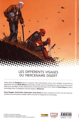Des informations chocs sont révélées concernant la deuxième voix que Wade Wilson entend dans sa tête, puis l'on fait appel aux services du Mercenaire Disert pour protéger un parc d'attractions contre des activistes. Enfin, Wade et Steve Rogers rendent hommage à leur compagnon d'armes disparu, Wolverine. Gerry Duggan, Scott Kolins, Salva Espin, Evan Shaner et leurs complices en font voir de toutes les couleurs au mercenaire canadien dans ce tome en marge de la chronologie.