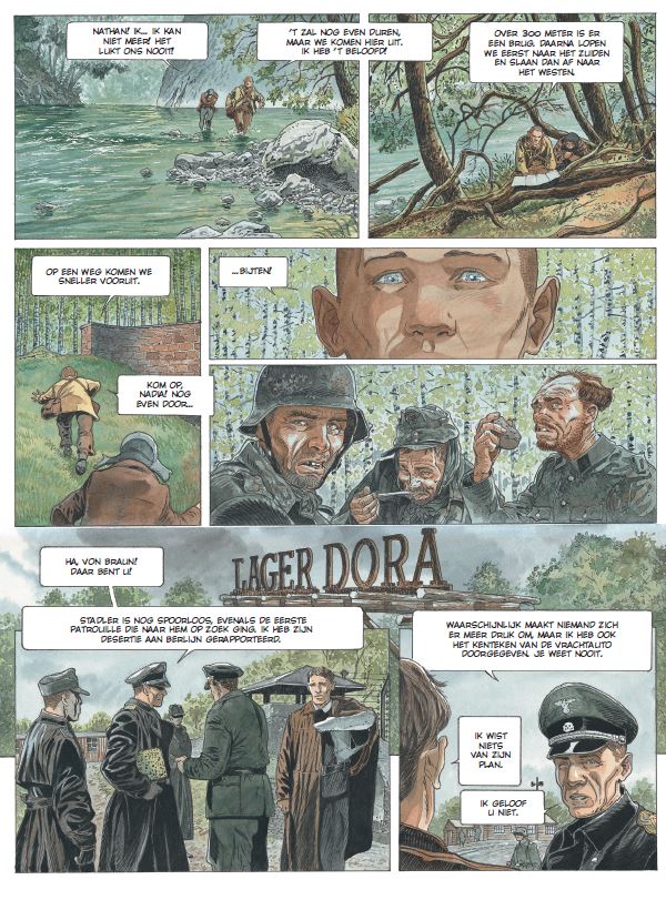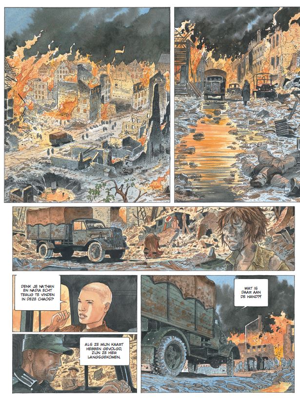 Van de Duitse nederlaag naar de eerste man op de maan. Nu de oorlog bijna voorbij is, gaan Solveig, Jörg en Aurélius op zoek naar Nathan en Nadia. Die twee zijn op de vlucht voor de laatste stuiptrekkingen van het conflict. Gevaar loert om elke hoek. In een woelige periode tekent de toekomst zich af. De verschillende machten plaatsen hun pionnen al op het hertekende spelbord. Nog voor de wapenstilstand getekend is, storten wetenschappers zich op de race naar de ruimte. Wernher Von Braun is een van de geleerden die een toestel trachten te ontwikkelen dat de mens twintig jaar later in staat stelt een voet op de maan te zetten. 50 jaar na de maanlanding zien we in dit album de eerste stappen richting de bestorming van de ruimte. Met grafisch dossier. Een reeks in tweeluiken: einde van de 4e cyclus. Realistische en heel filmisch getekende oorlogstopper.
