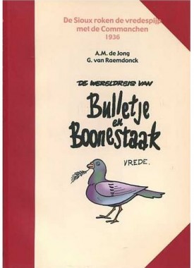 De levertermijn van de boeken van Uitgeverij Boumaar (indien we ze niet op stock hebben) is iets langer dan gewoonlijk. Gelieve hiermee rekening te houden. Alvast bedankt voor uw geduld. Bulletje en Boonestaak begonnen hun carriëre in 1922 en die duurde tot 1937. 44 Avonturen werden in de socialistische krant voorgepubliceerd en 19 verhalen kwamen in vijf verschillende periodes uit in boekvorm: in oblonbundelingen in de twintiger jaren, op pocketformaat in de jaren dertig (kleine gebonden harde kaften – pocket werd pas na de oorlog als benaming ingevoerd), weer oblong in de jaren vijftig en daarna op comic-formaat met een geheel nieuwe lay-out in de jaren zestig en zeventig. Met deze Boumaar-reeks is begonnen, daar waar andere uitgevers ophielden: bij verhaal 20 en afgemaakt tot de laatste strook. De complete uitgavenreeks is na 14 jaar werken nu beschikbaar. De Jong en Van Raemsdonck waren vrienden zoals Bulletje en Boonestaak waren in hun avonturen. Waarschijnlijk kun je De Jong vergelijken met Bulletje: een lawaaipapagaai die barstte van de energie en ideeën, streken uithaalde en verhalen kon vertellen als geen ander. ‘t Leverde de beste en meest humoristische verhalen op tot Franquin die met Guus Flater evenaarde. In alle 44 delen worden stukjes uit die periode, anecdotes van beide heren en tijd waarin zij leefden, besproken. Nu, na 95 jaar nog altijd een ‘must’ om te lezen. Opmerking c.q. waarschuwing: de strip bevat blote billen, grof taalgebruik en duidelijke stellingnames tegen ieder geweld, dat door De Jong en Van Raemdonck duidelijk en afschrikwekkend in beeld is gebracht. zwart/wit
