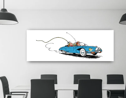 Dessin d'André Franquin, une peinture de qualité FINE ART sur une toile en polycoton premium de 350 g/m2, montée sur un châssis en bois et équipée d'un crochet de suspension.