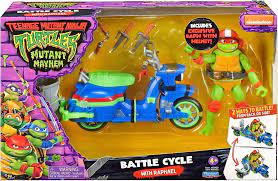 When one Turtle isn't enough to handle Super Fly and his minions of baddies the Turtles call on Raph and one of his brothers to go into action and take care of the trouble with Raph's Battle Cycle that features a transforming side car that any of the bros can ride along and battle. The side car from ride from the back or transform and ride from the side pending what type of action is required to handle the problem!