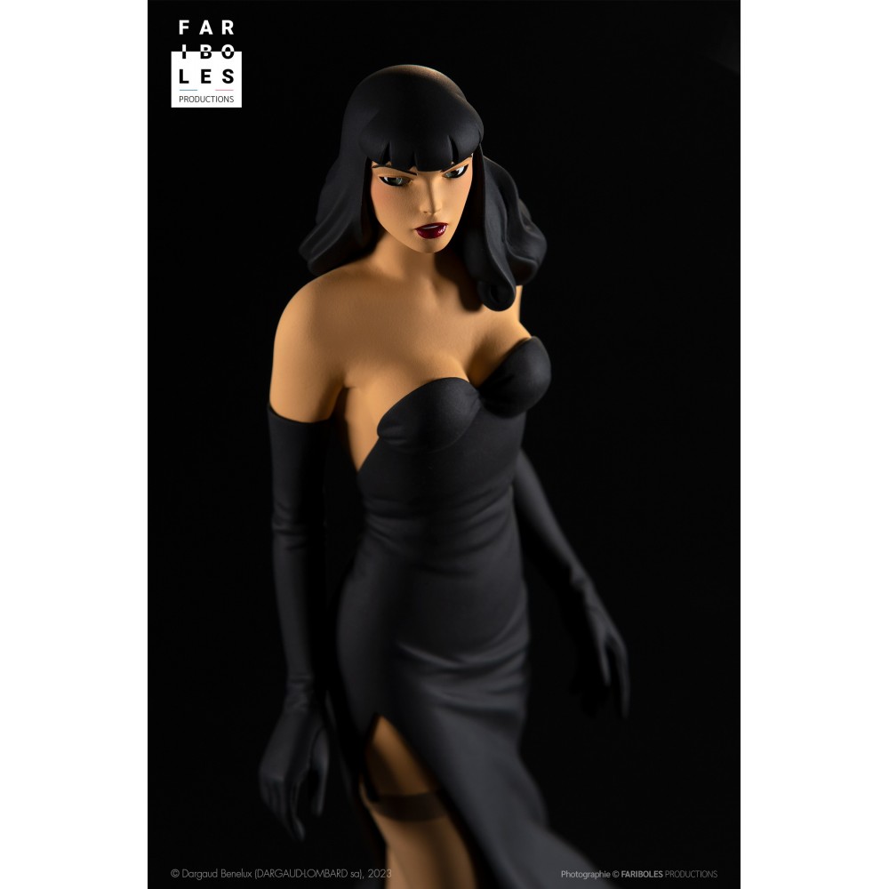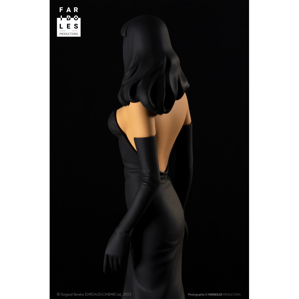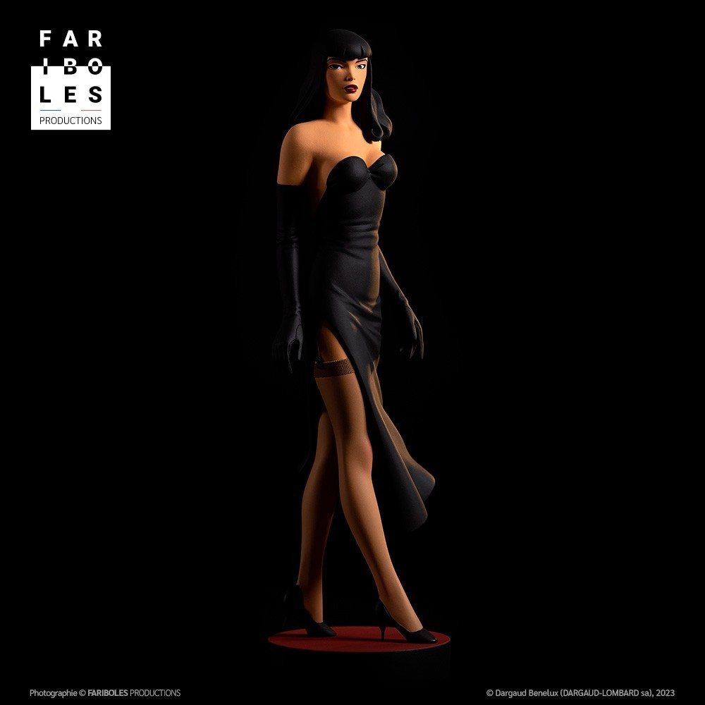 verwacht 2024 hoogte: 26 cm genummerd en gelimiteerd op 1000 ex met certificaat Sa démarche est souple et féline, haut perchée sur ses talons aiguilles, maquillage impeccable, corps de rêve dans une simple robe noire. Tous les standards de la pin-up iconique sont là, et pourtant regardez mieux : derrière ces codes se cache un être fragile, une femme moins sûre d’elle qu’on ne le pense. Un personnage sensible qui a tout autant besoin d’être protégé que désiré...