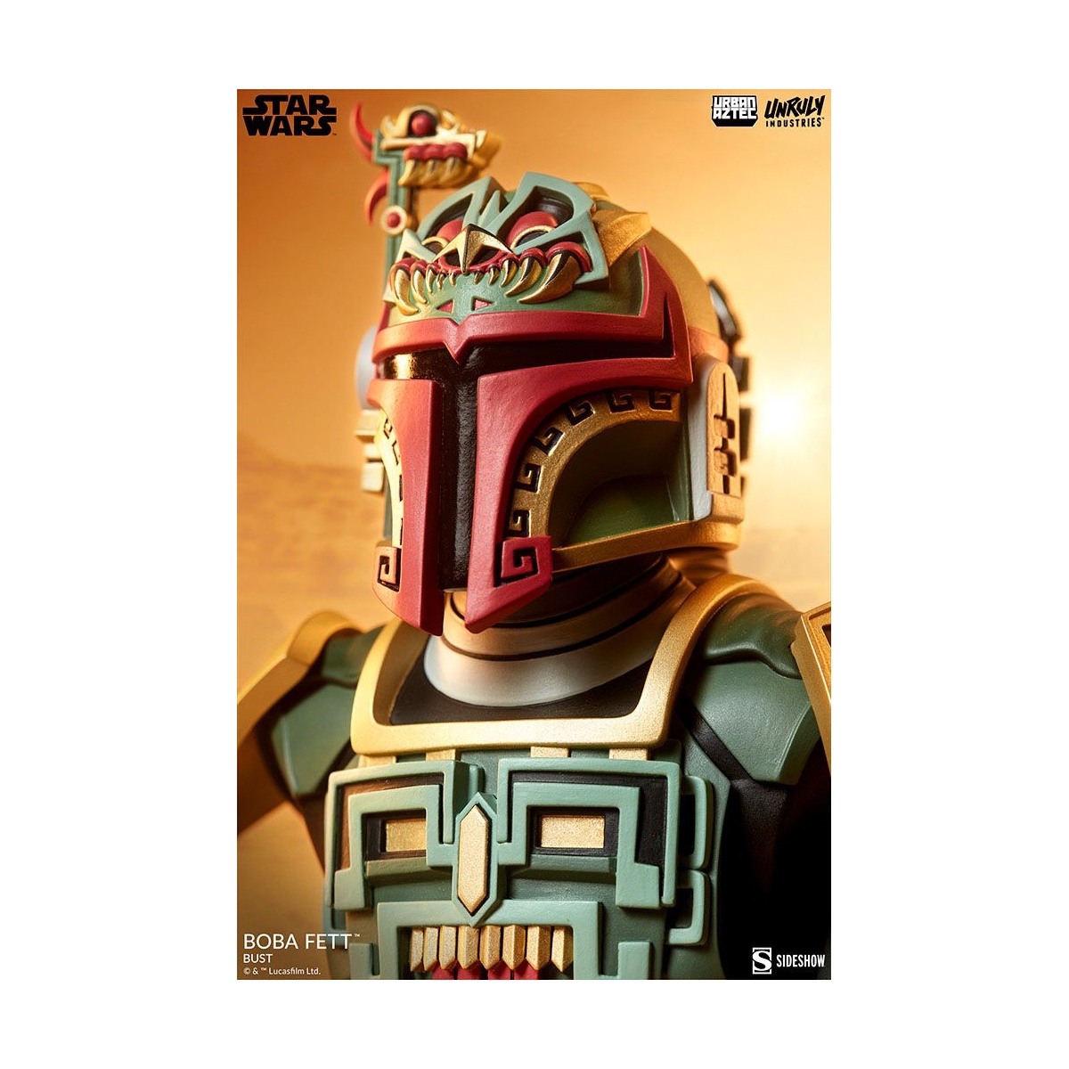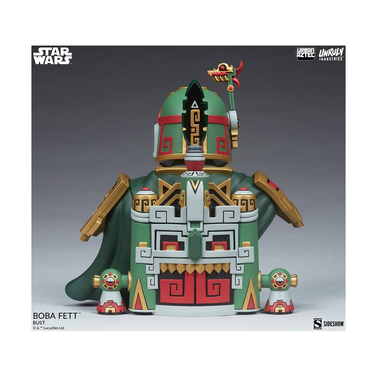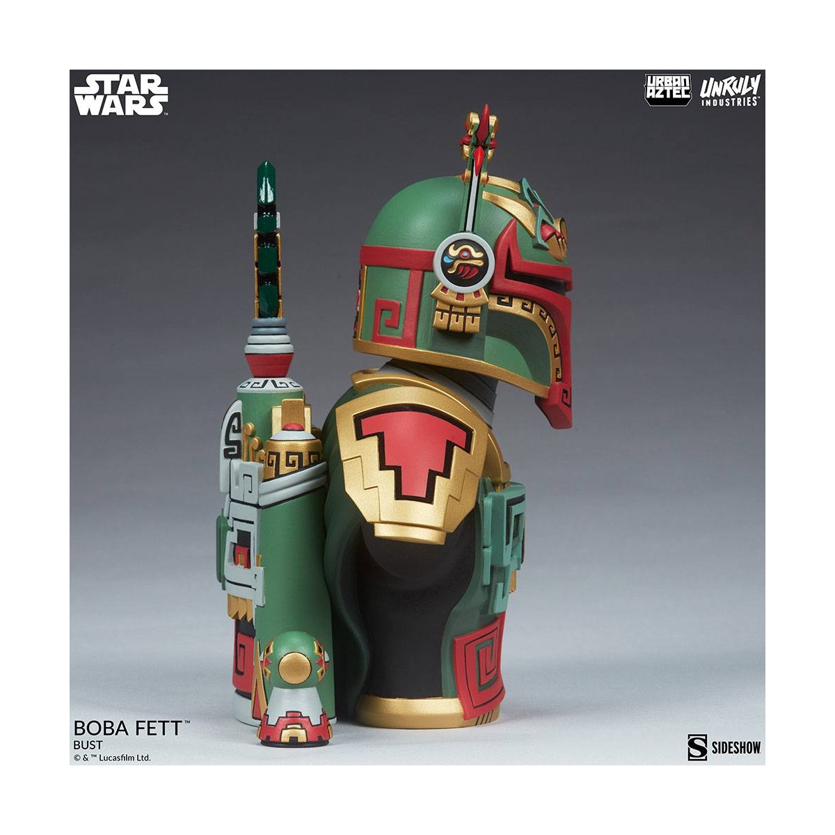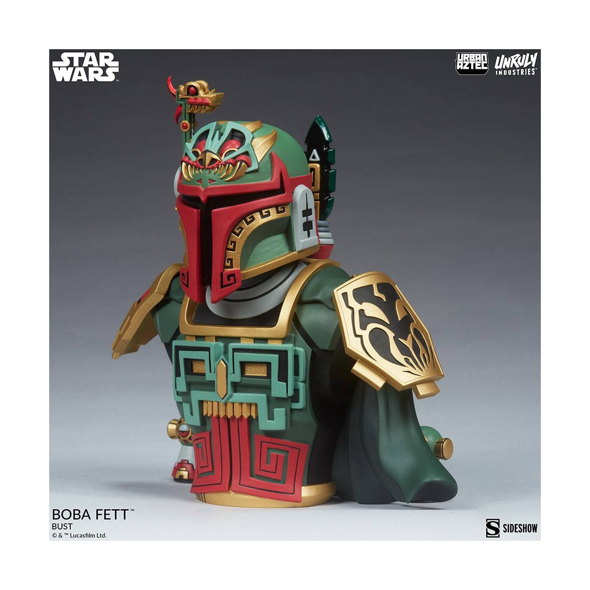 Buste Star Wars de Boba Fett en Urban Aztec Style, mesure env.20cm, produit officiel par Unruly Industries.