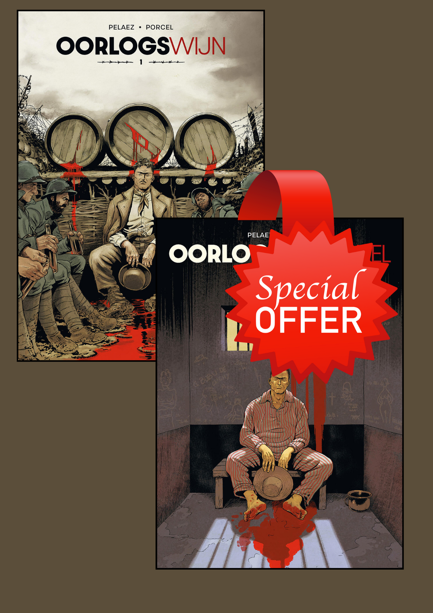 Oorlogscrimineel is het vervolg op Oorlogswijn, maar beide delen kan je los van elkaar lezen. In dit verhaal moet Ferdinand boeten voor wat hij in het vorige album heeft gedaan. Weg van het oorlogsfront krijgt hij in Oorlogscrimineel te maken met een ander soort mede- en tegenstanders in een verhaal dat wat doet denken aan de verfilmde roman Papillon. 'Na zijn tegenslagen in de loopgraven belandt Ferdinand Tirancourt in het bagno van Cayennes. Hij moet er een lange en definitieve straf uitzitten bij andere weerspannigen wier dagelijks leven hij moet delen. Hij wordt naar het verschrikkelijke boskamp van Charvein gestuurd dat voorbehouden is voor keikoppen. Een bewaker kan hem niet luchten en hij schept er genoegen in Ferdinand te pesten. Dat is echter niet wat Ferdinand het meest verontrust. Er is een andere, vreemde en stille gevangene die zijn kleinste bewegingen lijkt te bespieden.'