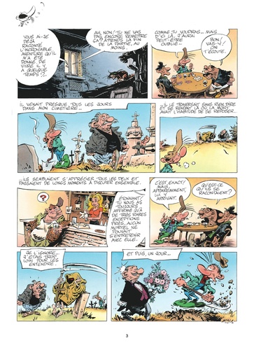 Etre enterré au cimetière de Pierre Tombal n'est pas toujours de tout repos : entre les squelettes qui refusent de savourer cette nouvelle tranquilité, ceux qui cherchent à arrondir leurs fins de mois en trouvant un petit boulot et les sempiternels râleurs, le fossoyeur le plus célèbre de la BD n'est pas prêt de connaître un repos éternel (et c'est tant mieux pour ses lecteurs) !