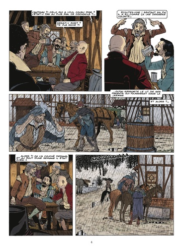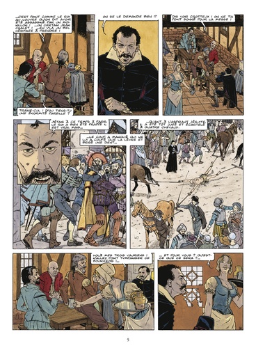 La Courcelles, écrivain public qui vend ses talents au plus offrant, se fait payer en monnaie de singe. Pour avoir une petite explication, elle se rend chez le changeur à l'origine de cette devise défectueuse et le découvre raide mort, un poignard planté dans le dos. Après enquête, elle retrouve les responsables du méfait et décide de les suivre à la trace. Les choses commencèrent ainsi, par une sorte de traque... mais lequel suivait l'autre ?Tome après tome, menée au scénario par Bardet qui manie à la perfection le vieux français et au dessin par Brice Goepfert, Les Chemins de Malefosse reste LA référence en matière de bande dessinée historique. A l'occasion de cette nouveauté, la série change de format et de prix.
