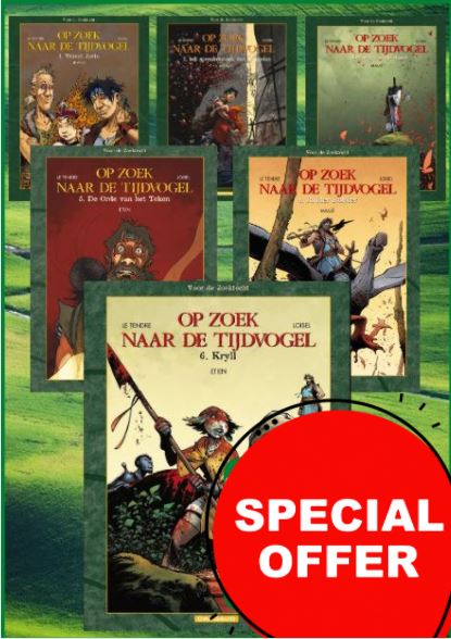 Kennismakingspakket met de eerste 6 delen van de tweede cyclus. maak kennis met deze reeks en ontdek de magische wereld die Loisel en Le Tendre meer dan 37 jaar terug creëerden. Er komt nog een deel 11 en een deel 12 en daarna nog een cyclus die zich zal vertellen wat er gebeurde na de eerste cyclus waarbij Loisel misschien zelf het tekenwerk zou kunnen verzorgen. Daar Loisel nogal streng is op de tekenaars en scenario is het niet altijd evident om deze reeks over te nemen. Dit ondervond ook David Etien ( De vier van Bakerstreet, Rommelgem). Hij wou dolgraag deze reeks verder tekenen en heeft hiervoor zelf gesolliciteerd bij Loisel die hem verwittigde van de hoge druk die op zijn schouders zou komen. Met Bragon had hij bijvoorbeeld een hele kluif om te voldoen aan de verwachtingen van Loisel. Ook heeft hij als jonge auteur natuurlijk niet de tijd om alles rustig af te werken, daar hebben Loisel en Le Tendre natuurlijk wel meer luxe. Ook zijn er nog de reeksen Rommelgem en De vier van Bakerstreet die hij verder moet afwerken. Dus de volgende twee delen komen eraan maar verwacht ze niet te snel. 🔜 Maar ondertussen is er deel 6 en daar maken we kennis met KRYLL een nieuw personage vol mysteries. Er is tevens sprake van een verfilming door de Deen Anders Walter en het zou om een miniserie gaan in een 8 tal afleveringen maar of dit tot een goed einde zal komen weten ze nog niet… Prequel van cultreeks Op zoek naar de tijdvogel. Tekeningen van Vincent Mallié, op scenario van bedenkers Loisel en Le Tendre.