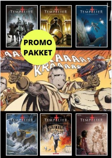 Promopakket van deze complete reeks ( 6 softcover delen) voor slechts 34 euro ipv 51 euro. U bespaart 17 euro. Een volledige afgewerkte reeks. Bewerking van de roman The Last Templar van de Libanees Raymond Khoury, die meer dan vier miljoen exemplaren verkocht in 25 landen! Tekenaar Miguel (alias Mike Lalor) koppelt flashbacks naar de geschiedenis van de tempeliers aan beelden uit het hedendaagse New York. Zijn tekeningen zijn verfijnd en spatten vol energie van de pagina's. Een serie met alle ingrediënten voor succes!