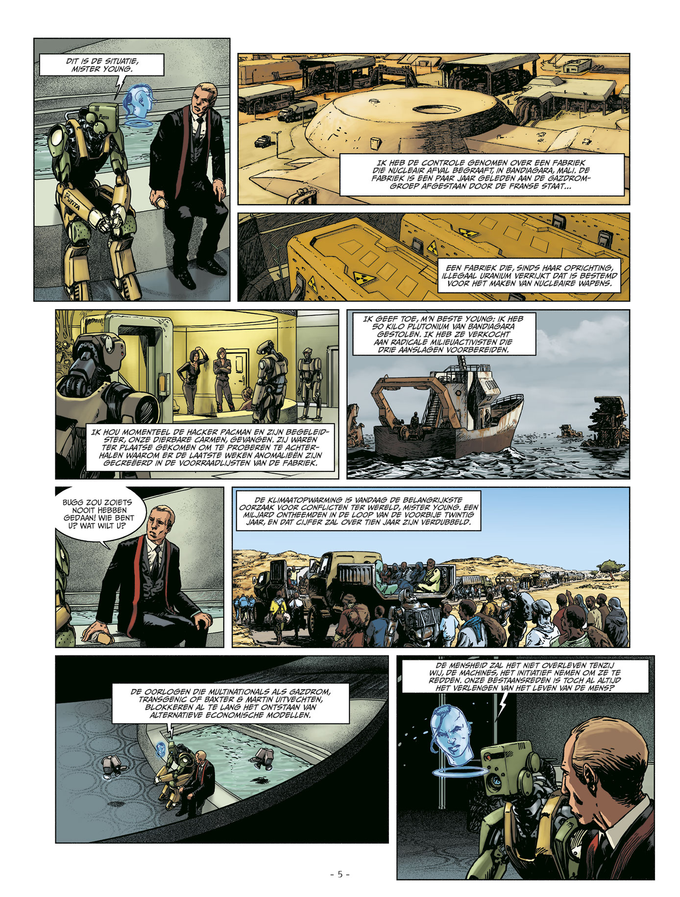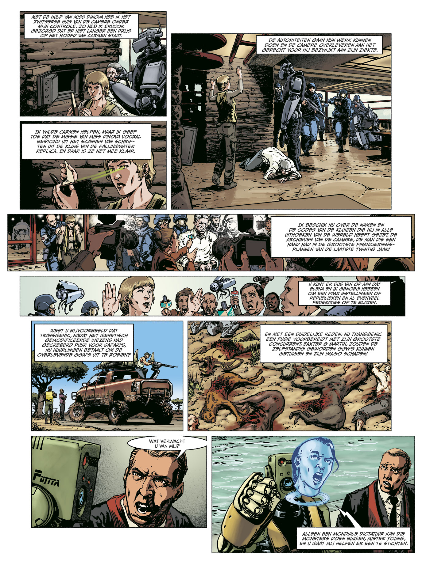 stripscenarist Duval Fred kennen we ook van volgende stripreeksen of albums uit die stripreeksen waaraan hij meewerkte > Hauteville House Het Wilde Westen Jeremiah Johnson Man van het jaar nevada Renaissance West Legends Wonderball Casus Nico Zwarte Waterlelies Carmen Mc Callum Striptekenaar Emem kennen we vooral van de stripreeks Renaissance Vervolg van de vijfde cyclus die uit vier delen bestaat en is begonnen in deel 13. 'Bugg, de geëmancipeerde intelligentie, ontstaan uit de fusie van een hacker en een AI, belast Carmen met een nieuwe, riskante missie. Ze moet op zoek naar de laatste genetisch gemodificeerde wezens die hun toevlucht hebben gezocht in Bamako, in een hoogradioactieve zone. Door de missie te aanvaarden gaat Carmen, zonder het te weten, bijdragen aan een belangrijke gebeurtenis die de wereld voor altijd zal veranderen.'