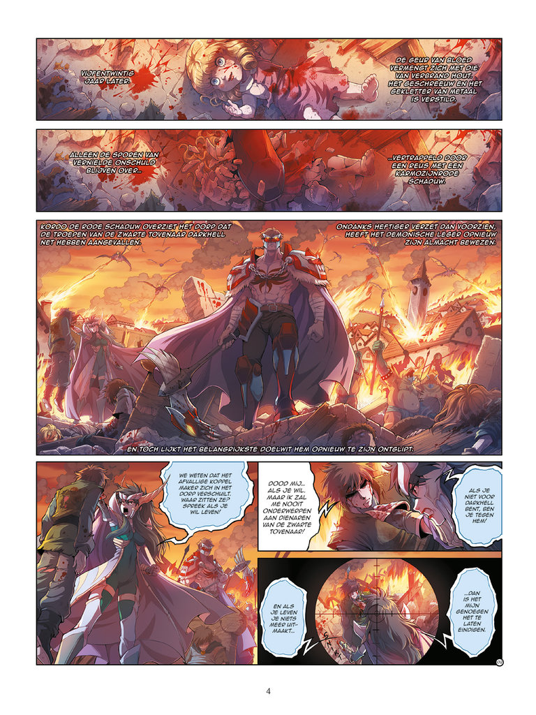 Dit is het laatste deel van Het begin, dus REEKS COMPLEET! Vroeger heette Razz niet Razz, maar Korbo, de Rode Schaduw. Onder die naam wreekt hij zijn familie, door een voor een de leden van het leger van de 1000 wolven te doden. Uiteindelijk zal het hem 20 jaar kosten, tot hij op een dag het pad kruist van Tenebris, die hem voorstelt samen met haar de wereld tot een betere plek te maken en het leger van haar vader, Darkhell, de zwarte tovenaar, aan te voeren. De Legendariërs - Het begin is een compleet verhaal in 5 delen. Lees ook de hoofdreeks van De Legendariërs. En in De Legendariërs - Missies beleven de vijf helden in ieder deel een nieuw avontuur. De tekenfilmserie is te zien op KetNet.