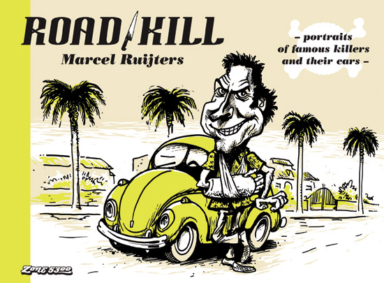 Roadkill - Portraits of famous killers and their cars door Marcel Ruijters Roadkill is een geheel nieuwe, frisse kijk op dat typische jaren-90 fenomeen, de fascinatie voor seriemoordenaars. Prijswinnend stripauteur Marcel Ruijters (Inferno, Sine Qua Non, Troglodytes) richt zich nu eens niet op de overbekende bloederige details, maar portretteert beruchte (serie)moordenaars als Ted Bundy (cover), Leopold en Loeb, Marc Dutroux en Ed Gein tegen de achtergrond van hun favoriete auto, die niet zelden een onontbeerlijke rol speelde in hun inktzwarte moordpraktijken.