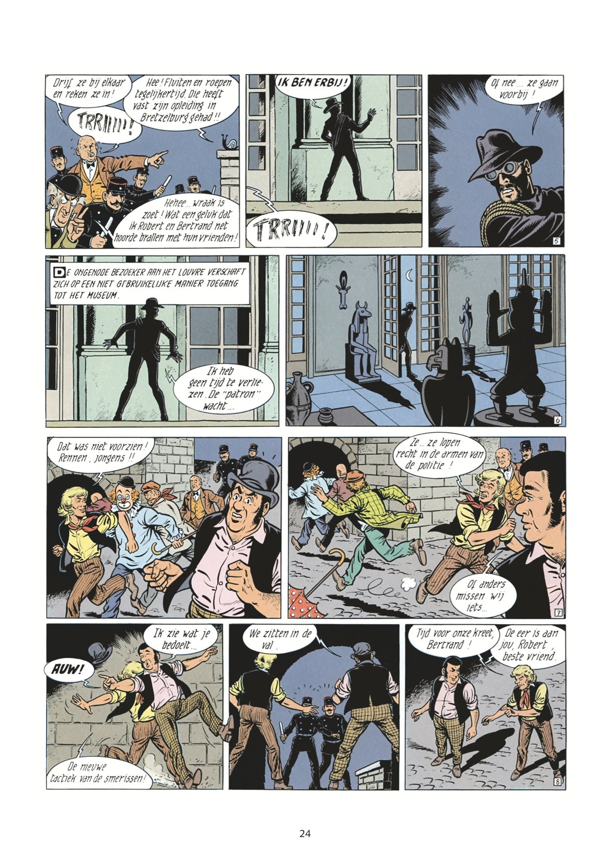 Geïnspireerd op de hoofdpersonages uit een negentiende-eeuws toneelstuk start Willy Vandersteen in 1972 een nieuwe reeks op over twee lustige vagebonden, Robert en Bertrand. Aanvankelijk zijn de twee hoofdpersonages nog schelmen, maar al snel evolueren ze steeds meer tot voorvechters van recht, gelijkheid en vrijheid. Standaard Uitgeverij bundelde in eerste instantie de eerste 65 verhalen in 10 lijvige integrales in kleur mét een achtergronddossier. We kunnen intussen ook bevestigen dat de complete reeks als integrale zal uitgegeven worden, dus ook die na deel 66, het laatste door Willy Vandersteen geschreven verhaal. Deze integraal bevat volgende verhalen: Paniek in Saltshire, De hotelrat, De vleermuis, Jacht op nr 17, De apache en Madame Sarah.