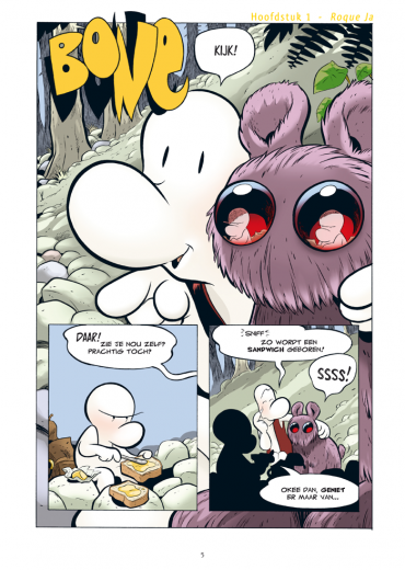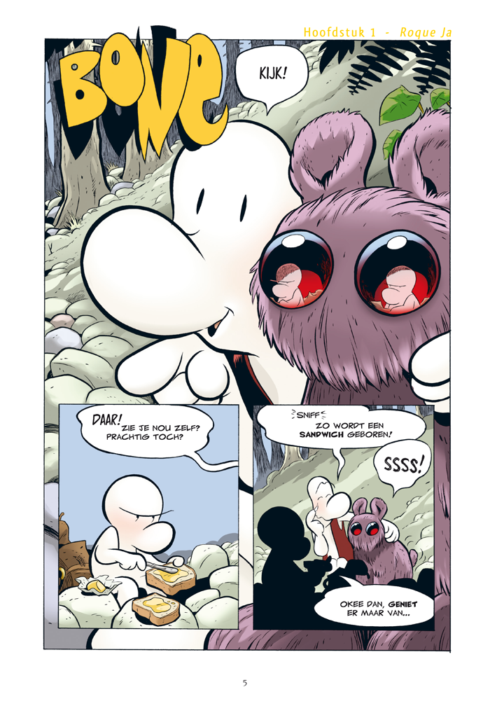 Terwijl Phoney Bone mislukte als drakendoder, vertrokken Fone Bone en Smiley Bone in het diepste gehiem uit Barrelhaven met een rattenbeestjong. Hoewel het aanvankelijk niet de bedoeling is, brengen ze het jong helemaal naar de bergen waar ze een nieuw kleurrijk figuur tegenkomen: Rock Jaw. Die kan aardig zijn, maar hij kan af en toe ook flink last hebben van een humeurtje. Bone is een van de grootste stripgeschiedenissen van het afgelopen decennium. De serie omvat 9 delen en bij elkaar meer dan 1300 pagina's.