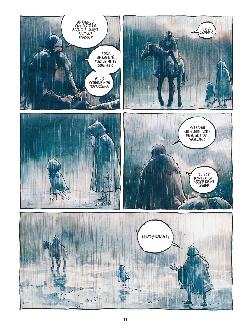 Oorspronkelijk was Aldobrando een personages dat Gipi (onder meer de auteur van Een verhaal ) bedacht voor een bordspel. Hij verzon een heel levensverhaal voor Aldobrando en dat werd uiteindelijk de basis voor een stripscenario dat in beeld werd gebracht door Luigi Critone (bij het grote publiek bekend van De schorpioen) De semi-realistische tekeningen zien er prima uit en het verhaal is geestig met tedere en brute momenten. Er zit flink wat vaart in het verhaal en dat leest prettig. Alles bij elkaar levert dit een leuke coming-of-age-strip op in een fantasy-setting.