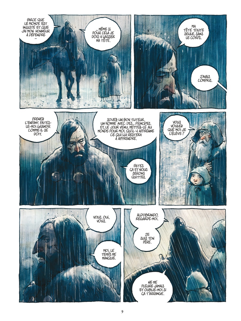 Dat heeft voor een groot deel te maken met hoe Aldobrando de onbekende wereld om hem heen beschouwt. Hij weet niet veel van wereldse zaken en dat zorgt voor verrassende wendingen die het verhaal verder dragen. De ronduit fraaie tekeningen van Luigi Critone helpen zeker ook mee: ze zijn zacht en vriendelijk. Hij heeft met name de figuur Aldobrando heel goed in de vingers. Gaandeweg maakt de jongeling een prachtige ontwikkeling door, die sterk wordt getoond. Hetzelfde geldt voor de prinses, die een steeds belangrijkere rol krijgt.