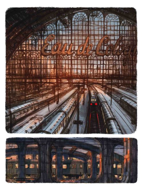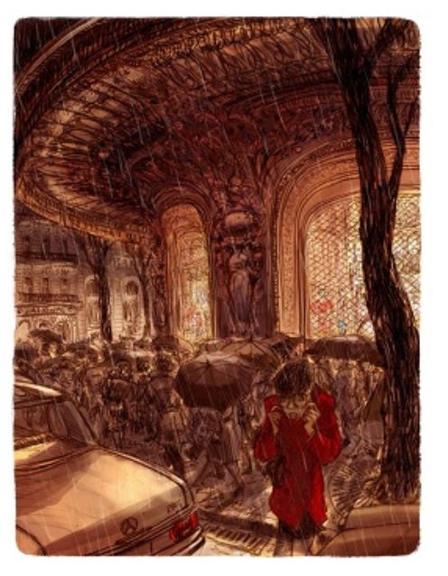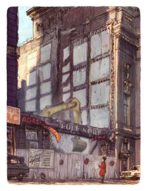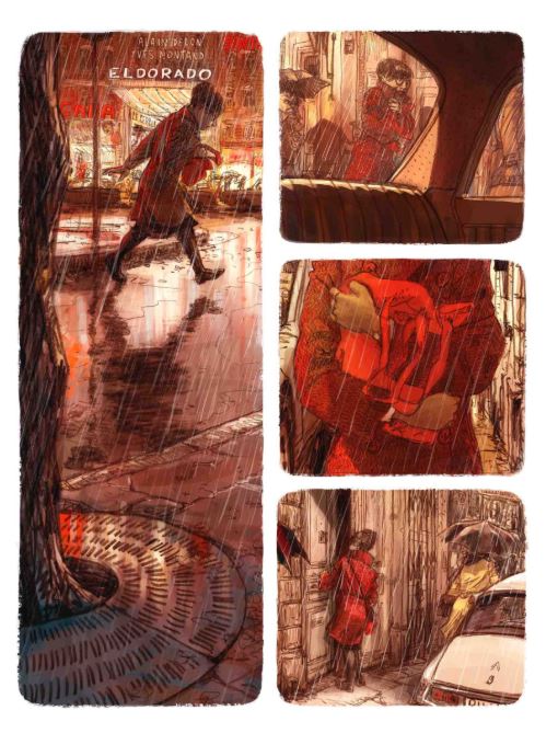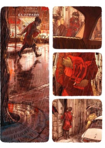 Op weg naar haar werk 'Galeries La Brouette' (kruiwagen??) merkt Beatrice een felrode tas op, die op haar lijkt te wachten. Die kan ze toch niet laten staan? Er blijkt een fotoalbum van eind jaren twintig in te zitten. Bijna 100 jaar geleden dus. Naar die roerige tijd zou Beatrice wel eens graag naar terugkeren. Maar is dat wel zo'n goed idee? Want was het geluk er niet altijd al? Maar dat ziet ze niet. De rode kleur van Beatrice heeft niets te maken met de film Schindler's List (1993). Rood is gewoon een warme kleur die prima bij Beatrice past. De tekeningen zorgen voor de tekst. Joris Mertens (Bleekwater) tekent met vele krabbeltjes, kribbeltjes en krasjes om tot een geheel te komen dat van elke prent een ex libris maakt. We worden verwend met tekeningen met oneindig veel details. Hier is duidelijk een filmliefhebber aan het werk! Camerastandpunten worden ingenomen. Dit is cinema in de strip. Let op het 'buitenbeeld': de onzichtbare ruimte die zich buiten beeld bevindt en die wij er bij denken. Hier is sprake van 'montage'. Mertens bepaalt als een regisseur de volgorde van de beelden. Bij iedere nieuwe lezing ontdekken we steeds nieuwe elementen. Zouden wij die rode tas meenemen?