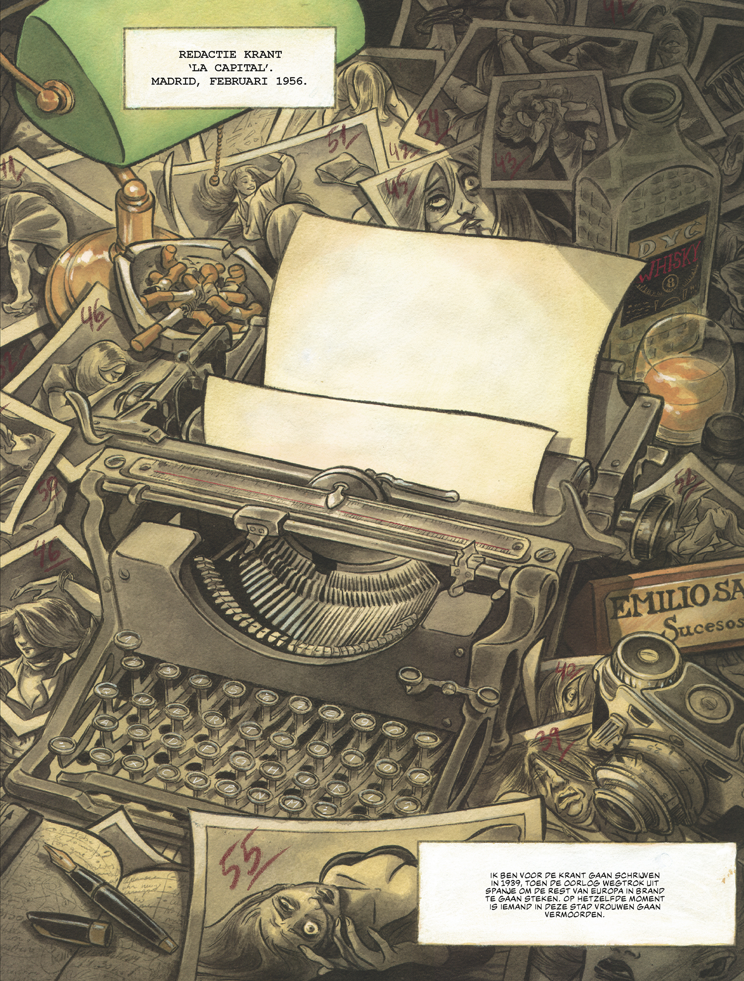 Contrapaso is een historische thriller van formaat gebaseerd op waargebeurde feiten. De ons onbekende Teresa Valero, echtgenote van Blacksad scenarist Juan Diaz Canales, levert een knappe graphic novel af. In een kanjer van 152 pagina’s schetst ze één van de somberste periodes uit de Spaanse geschiedenis. Deze “roman noir” situeert zich in het Spanje van de jaren 1950 onder de zware censuur van het Franco regime.