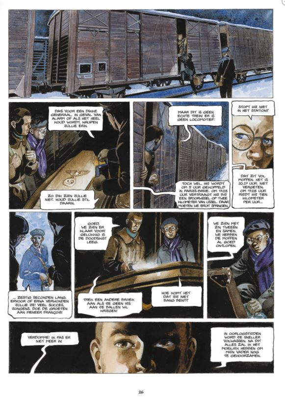 het laatste album van de in 2019 overleden Patrice Ordas, de medescenarist van Ambulance 13. Voor het one-shot De Spijbelaars ruilde hij de Eerste Wereldoorlog voor de Tweede Wereldoorlog. Voor het verhaal putte hij uit de oorlogsbelevenissen van zijn eigen grootvader en die waren extreem bijzonder. Tekenaar Aain Mounier (Ambulance13) sloofde zich uit om het kleurrijk en tegelijk hard in beeld te brengen. December 1943. Voor Jacques, François en Jean wenken de examens. Maar een woordenwisseling met een Duitse soldaat zal hun leven op hun kop zetten. Vooral omdat de Joodse roots van Jacques hem nu in groot gevaar brengen. Vergezeld door Colette, de nicht van François, en met het gevoel dat ze onverbiddelijk in het nauw zitten, vluchten ze naar Corrèze. Daar is maar één uitweg: toetreden tot het verzet en weerstand bieden. Het laatste album van de in 2019 overleden Patrice Ordas, de medescenarist van Ambulance 13. Gebaseerd op oorlogsbelevenissen van zijn eigen grootvader Scenarist Ordas Patrick kennen we van onder andere volgende stripverhalen: 1. Ambulance 13 2. De Rafale 3. De Venetiaanse 4. Hindenburg 5. SOS Lusetania 6. Moses Rose 7. De Drenkelingen van Metropolitain