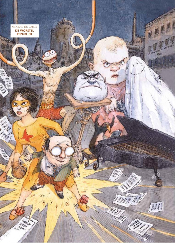 'Waarde leden van de Worstelrepubliek! De toekomst is aan gokhallen, ingevoren cellen, speltechnologieën en transhumanistische experimenten ... Die toekomst breekt nu aan, beste vrienden, en wij gaan haar schrijven!' De worstelrepubliek kwam voort uit een opdracht van de Japanse uitgeverij Shueisha. Het was voor Nicolas de Crécy een unieke kans om in alle vrijheid een 'manga'? te maken waarin de Franse en de Japanse stripwereld elkaar konden ontmoeten. De shinto-mythologie met haar geesten en godheden, de befaamde yokai, en de typisch Japanse maffiacultuur van de yakuza inspireerden De Crécy tot een verhaal waarin een leger van worstelaars in dienst van de maffia het opneemt tegen hun spiegelbeeld: een leger van geesten die kracht putten uit hun zwakheden.