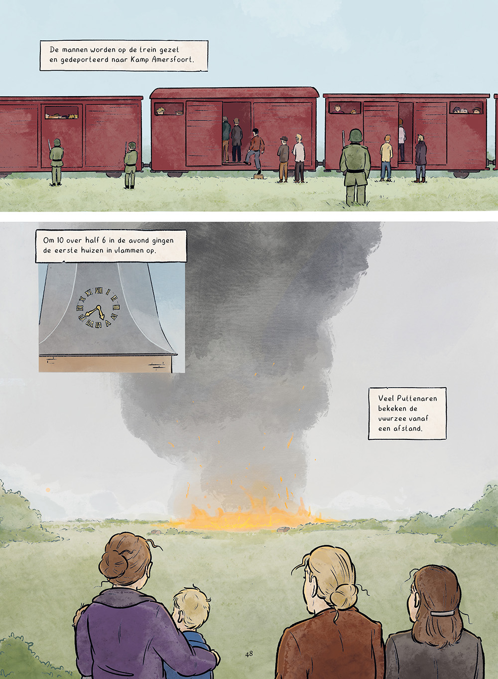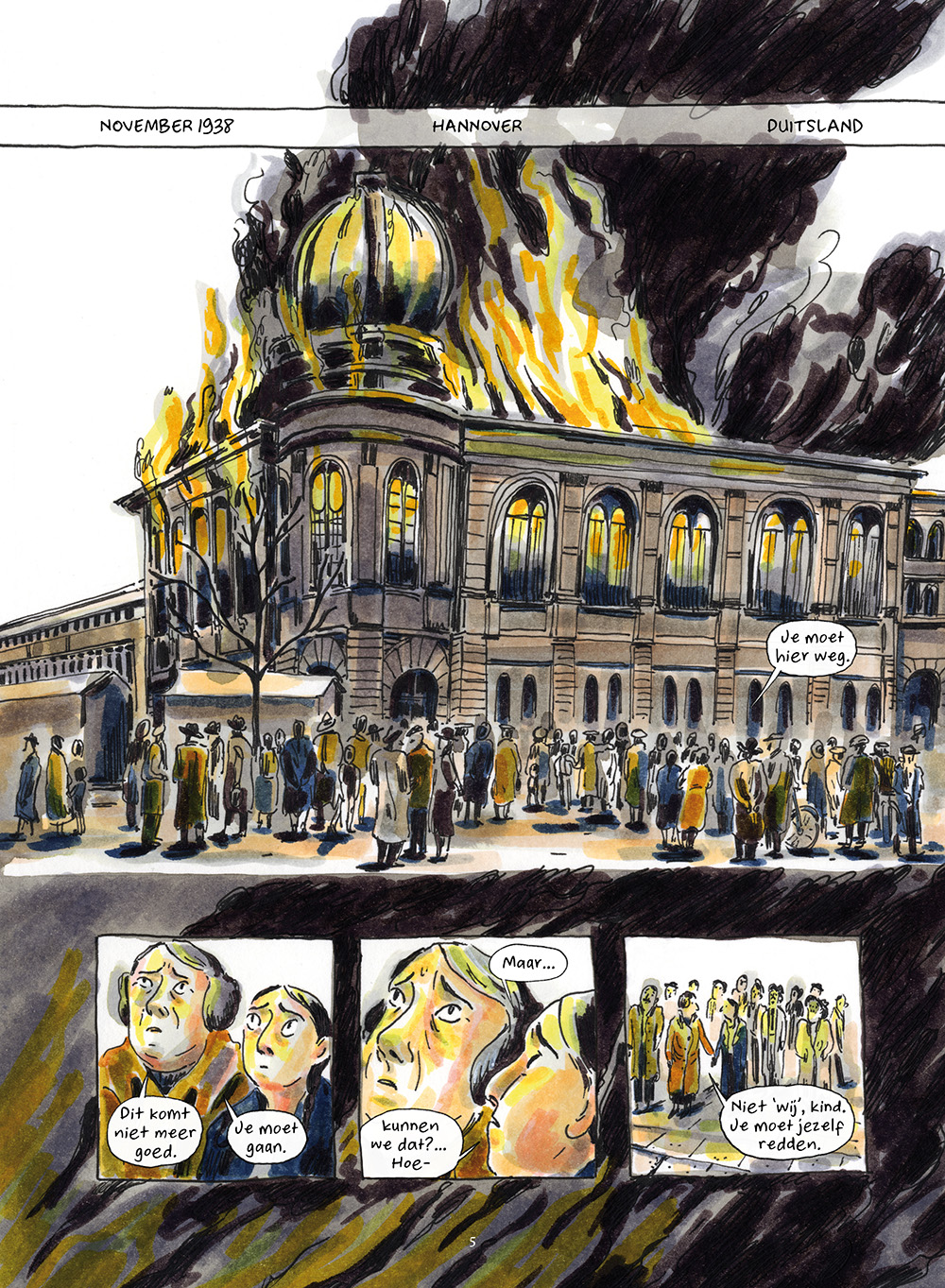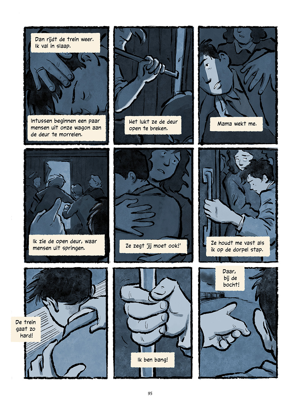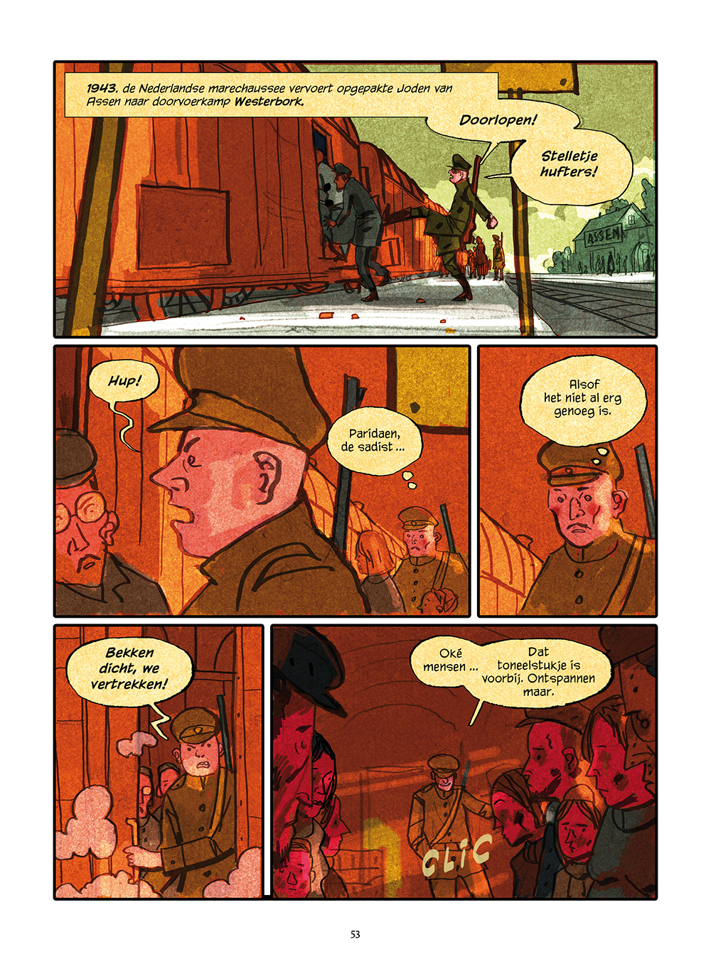 B. Carrot, Wide Vercnocke, Erik de Graaf, Guido van Driel, Melanie Kranenburg, Milan Hulsing, Sterric, Jennifer Daniel, Jeroen Janssen & Arezoo Moradi, et Tobi Dahmen se sont plongés dans les histoires choquantes vécues par diff érentes personnes qui ont connu la guerre. Pour nous, ils les font revivre en images. Chaque BD est accompagnée d’un bref commentaire rédigé par des collaborateurs de l’un des centres de commémoration de la Shoah : Westerbork, Neuengamme ou Kazerne Dossin.