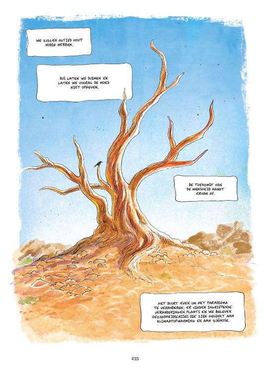 Ondanks alles blijf je als pure stripliefhebber wel op je honger zitten. Dit soort boeken blijven toch eerder hangen tussen illustraties en strip. Ze zijn er vooral om die ene boodschap kracht te geven. In dit geval dat het beschermen van bomen ook de mensheid zelf beschermt,.
