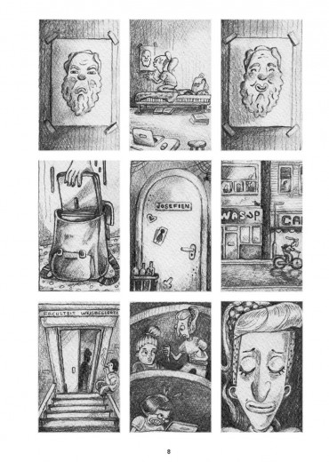Tekstloos albumdebuut in zwart-wit van Sarah Pannekoek. Dave is van huis en Josefiens hoofd slaat op hol. Is hij wel te vertrouwen? In de warme, brommende, druipende hoeken van de wasserette beleeft Josefien spannende avonturen en komt ze een stapje dichter bij wie ze echt is. “Tijdens mijn studie heb ik een tijd in een wasserette gewerkt. Een magische plek; brommende geluiden, flikkerende tl-buizen, statische kleding en vreemde klanten. Terwijl ik de honderdste handdoek aan het opvouwen was, gleden mijn gedachten weg en fantaseerde ik over de verhalen die ik wilde vertellen. Een paar jaar later had ik het druk met mijn animatiewerk. Na lang achter de computer te zitten, snakten mijn handen naar potlood en papier. En opeens waren daar Josefien en haar romances in de wasserette. Ik heb ervan genoten om deze sexy strip te maken vanuit het perspectief van een vrouw. Het was een heerlijke visuele ontdekkingsreis, waarin ik mijn liefde voor striptekenen heb gevonden.“