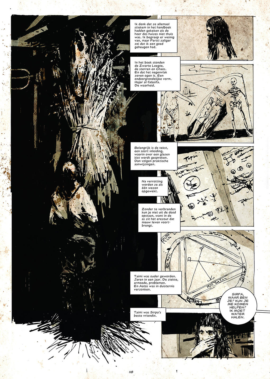 Paardengod Vertaling van een spannende thriller van de Finse stripmaker Sami Makkonen. 'Een snoeiharde winter. Een hete zomer vol libellen. Een oud landgoed omringd door een ondoordringbaar bos — allemaal met elkaar verbonden door een duister verleden. 'H.P. Lovecraft meets Midsommar', werd er in Finland gekopt toen deze fabelachtig getekende folklore horror graphic novel uitkwam. Als enkele jonge mannen op een skitrip door de snelvallende avond worden verrast, vinden ze onderdak bij een afgelegen huis in het bos. De familie die ze ontvangt, blijkt er vreemde gewoonten op na te houden en al gauw vragen de mannen zich af of ze het naar huis redden voor de Kerst...' Sami Makkonen shockeerde Finland eerder met zijn interpretatie van het Finse volksepos Kalevala. In Paardengod stuurt hij het plot als een spiraal van de ene tijd naar de andere, waarbij oude demonen terugkeren in nieuwe vormen. Zo ontstaat een kruisbestuiving van bovennatuurlijke horror, occultisme en volksgeloof – een nachtelijk pad naar een zwarte afgrond.