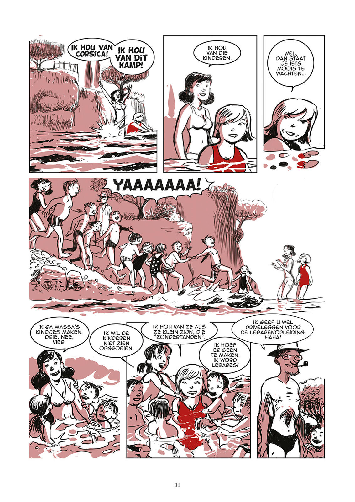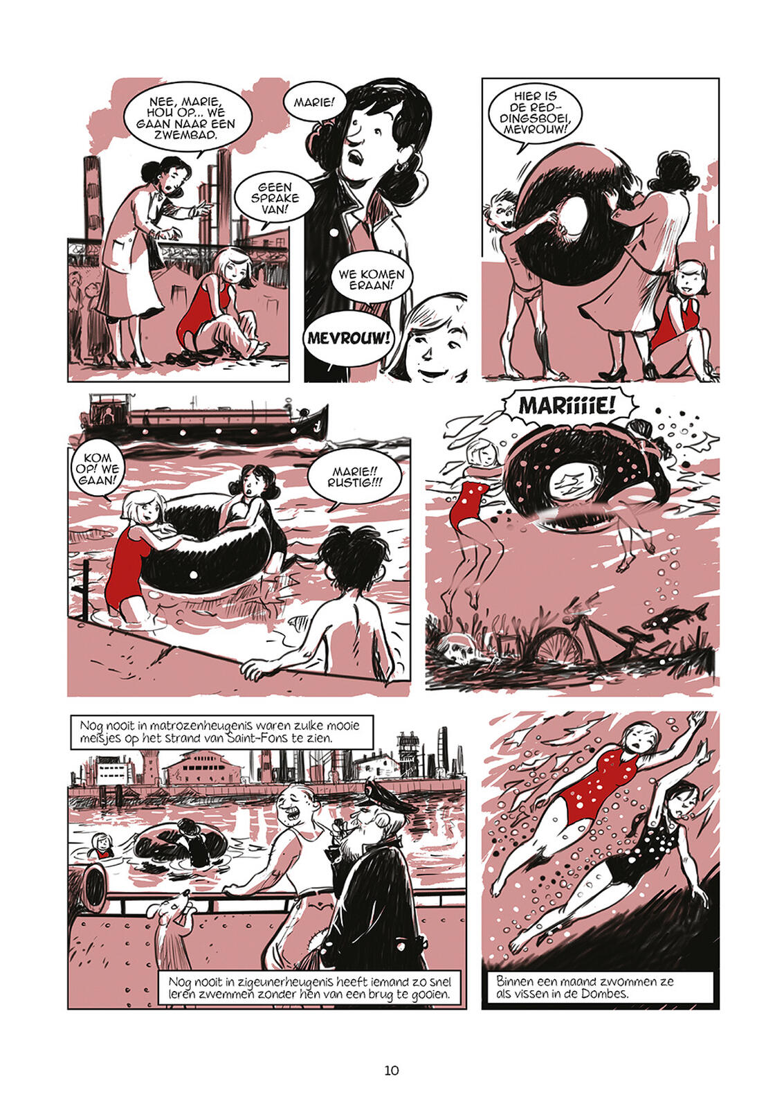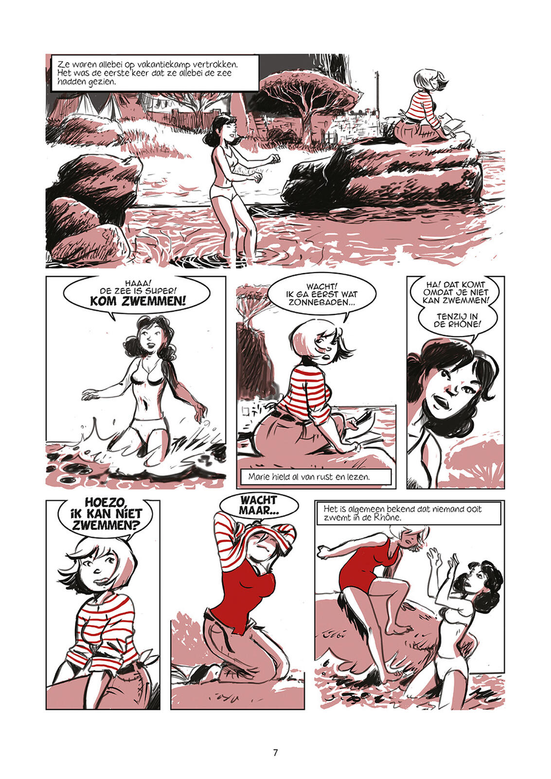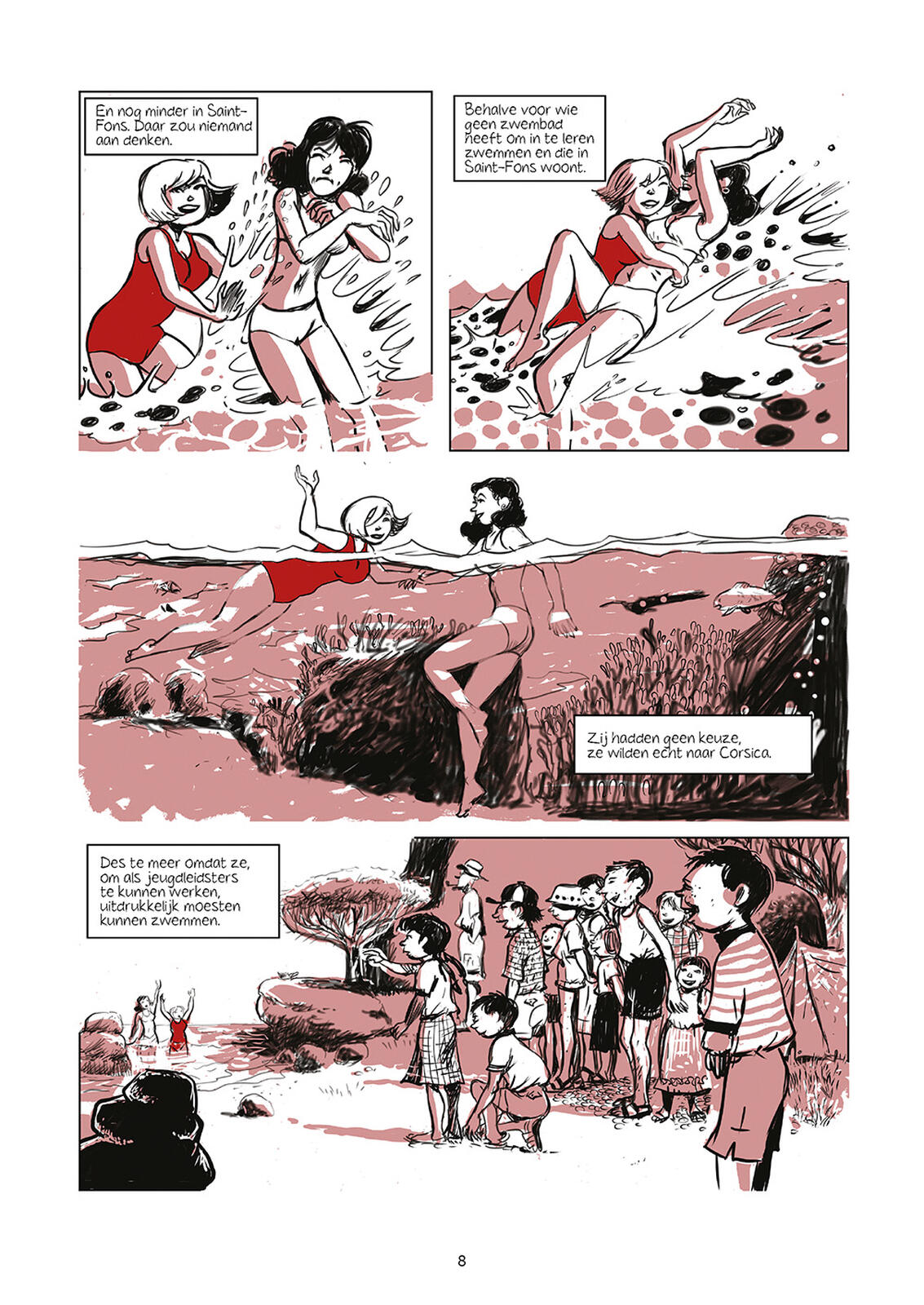 Het verhaal begint origineel met de introductie van de hoofdpersonages en de manier waarop ze hebben leren zwemmen. Na enkele belangrijke elementen uit de jeugdjaren te hebben beschreven, komt de ziekte van het hoofdpersonage aan bod. De evolutie van de ziekte en de manier waarop alle personages hier op hun eigen manier mee omgaan, wordt mooi in beeld gebracht. Dit zorgt natuurlijk voor veel emotionele momenten. De afloop van het verhaal is heel sereen. Ondanks het overlijden van het hoofdpersonage geeft het toch een soort van goed gevoel omdat ze gelukkig is heen gegaan. De tekeningen zijn mooi en speels afgewerkt met zachte kleuren die veranderen met de evolutie van het verhaal. Een mooi verteld en getekend verhaal dat je een aangenaam leesmoment bezorgt.
