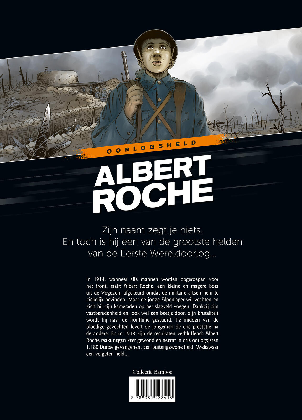 Met de nieuwe reeks Oorlogsheld bij uitgeverij Saga start een ambitieus project waarin getalenteerde tekenaars elk een album wijden aan het leven van een oorlogsheld. Albert Severine Roche, een Franse soldaat uit de Eerste Wereldoorlog die in België relatief onbekend is gebleven, maar in Frankrijk ooit werd uitgeroepen tot “de eerste soldaat van Frankrijk,” mag de spits afbijten. Tekenaar van dienst is Éric Stalner.