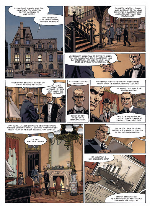 De schipbreuk die de loop van de Eerste Wereldoorlog zou veranderen ... 2160 passagiers schepen op 1 mei 1915 in aan boord van de RMS Lusitania. Zeven dagen later, zijn er van deze 2160 reizigers nog maar 703 in leven ... Onder de overlevenden van de schipbreuk bevinden zich een Franse dubbelagent, die midden in het web van intriges rond het torpederen van de Lusitania zit, en Alfred Vanderbilt, erfgenaam van een van de belangrijkste handelskapitalen van de Verenigde Staten. Beide heren willen de achtergronden van de tragische gebeurtenissen uitspitten ...