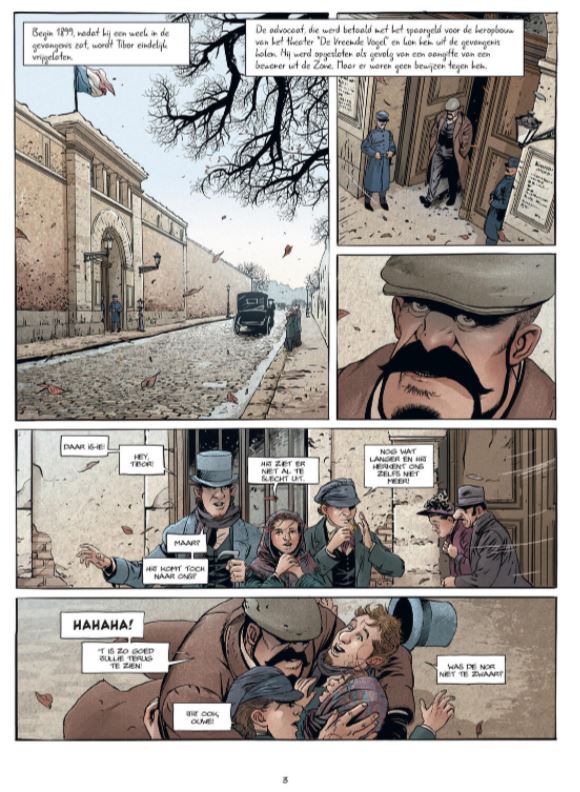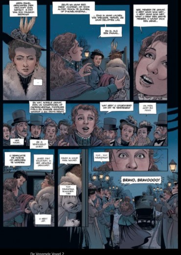 Slot van het boeiende tweeluik Tweeluik van striptekenaar Stalner die we kennen van volgende stripverhalen 1. Blues 46 2. De Buit 3. Exile 4. Goud onder de sneeuw 5. De Lange Stilte 6. Wolf 7. Sektor 8. Malheig en nog vele meer Eind negentiende eeuw, een immense sloppenwijk rond Parijs: de Zone. Daar wonen Eugénie en haar bende die doorgaat voor haar familie. Vijf mensen die sterk met elkaar verbonden zijn, te midden misdeelden die overal uit de stad werden verjaagd door de vastgoedspeculatie. Om haar droom te realiseren, het heropbouwen van “De Vreemde Vogel”, het cabaret van haar grootvader, is Eugénie tot alles bereid. Diefstal, bedrog en chantage behoren tot haar dagelijkse activiteiten. Maar de almaar gewaagdere zwendel dreigt het groepje in gevaar te brengen. En dan heeft Eugénie een beslissende ontmoeting met de grote Sarah Bernhardt. De grote actrice en diva Sarah Bernhardt houdt woord en geeft de ambitieuze straatzangeres Eugénie werk in het theater. De verwachtingen voldoen echter niet aan de realiteit. Maar Eugénie zet met de hulp van haar kleurrijke bende door om het afgebrande theater van haar grootvader te herbouwen. Om dat doel te bereiken, moet het volkse meisje zich inlaten met bedrog en diefstal. Ze bereidt een grote slag voor, ook al houdt dat in dat ze haar grote idool een hak moet zetten. De wendingen stapelen elkaar op. Wordt het een happy end of eindigt de bende achter de tralies?