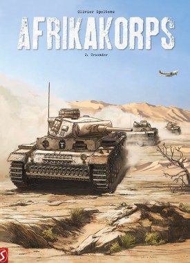 Verzamelaars en liefhebbers van het werk van Olivier Speltens willen deze Luxe Editie ­absoluut niet missen! - Luxe hardcover 'Afrikakorps' deel 1 met andere covertekening - Linnen rug - schetsdossier - 1 door Olivier Speltens gesigneerde A4 ex-libris - oplage slechts 100 exemplaren, genummerd, OP=OP! In februari 1941 arriveert luitenant Joachim von Richter met zijn mannen in Afrika. Deze panzercommandant trekt te strijde op een nieuw front in Noord-Afrika. De hitte en het zand zijn er even geducht als de Engelse troepen die er gestationeerd zijn. Er wacht de bemanning van de 522-tank een zware strijd, maar de orders zijn duidelijk, Tobroek moet worden ingenomen! Het Afrikakorps (Deutsches Afrikakorps, DAK) was tijdens de Tweede Wereldoorlog het expeditieleger van de Duitsers in Noord-Afrika. Het werd initieel gemobiliseerd als een ondersteunende kracht om de Italiaanse verdediging van de Afrikaanse koloniën te versterken. Na hun training bleven ze, onder het commando van de iconische maarschalk Erwin Rommel, onder verschillende namen vechten in Afrika en dat van maart 1941 tot hun overgave in mei 1943. Afrikakorps is een drieluik van Olivier Speltens (De hel van het Oostfront).