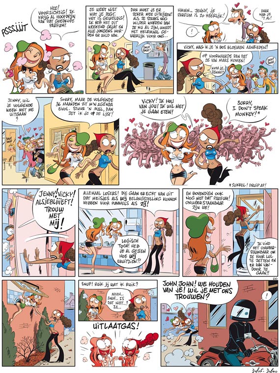 Jenny en Vicky zijn de grootste pestkoppen die je je kunt inbeelden en je loopt eigenlijk liever in een grote boog om ze heen. Ze voelen zich de navel(s) van de wereld en zijn tot alles in staat om op te vallen. Wanneer ze horen dat Karin, best een aardige meid maar niet erg verwend door moeder Natuur, uitgaat met jonge god Dan, willen Jenny en Vicky roet in het eten gooien. Ze leggen al hun creativiteit aan de dag om de prille romance te saboteren. Niet omdat ze in Karin een concurrente zien (die hark een concurrente? Stel je voor. Da's een belediging!) maar om de vriendschapsband binnen het trio niet in gevaar te brengen ...