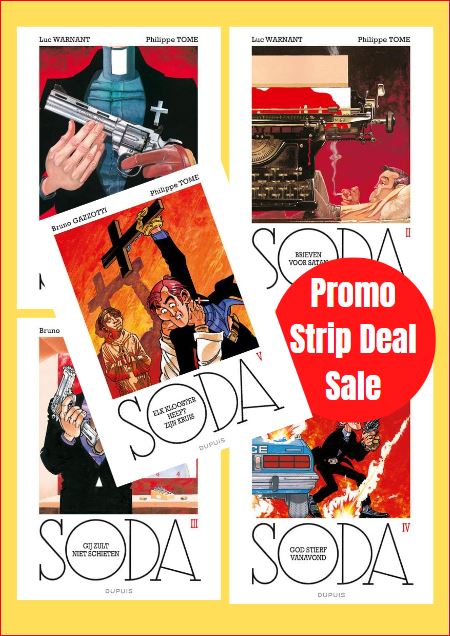 Deze stripdeal bevat de eerste 5 delen van deze stripreeks en dit in een mooie promopakket! David Solomon is zogezegd priester. Dat vertelt hij aan zijn moeder, die hartproblemen heeft. Maar eigenlijk is hij politieman! Beter bekend als 'Soda', de man met slechts drie vingers aan de linkerhand (ooit zullen we weten waarom...). De gure achterbuurten van New York hebben voor Soda geen geheimen. Hij dróómt van die stad. Maar echte nachtmerries beleef je staande, met de Python-blaffer in de hand. New York? Is dat niet een van de meest beschaafde metropolen ter wereld?