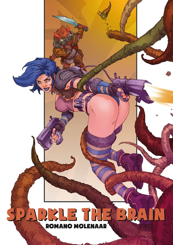 Sprankelend nieuw project van Romano Molenaar. Elke dag maakt Romano Molenaar een tekening zonder voorstudie of referentie onder het motto 'straight to paper'. De onderwerpen van deze tekeningen gaan alle kanten op. Van monsters, tot sexy babes, van futuristische voertuigen tot indrukwekkende collages van koppen en figuren. Heerlijke breinprikkels waar Romano de dag mee begint. Sparkle the Brain is de manier van Romano om zijn enorme talent te blijven prikkelen en stimuleren. Het resultaat is een prachtig boek van bijna 300 pagina's waarin Romano ook commentaar geeft bij elke gepubliceerde tekening.