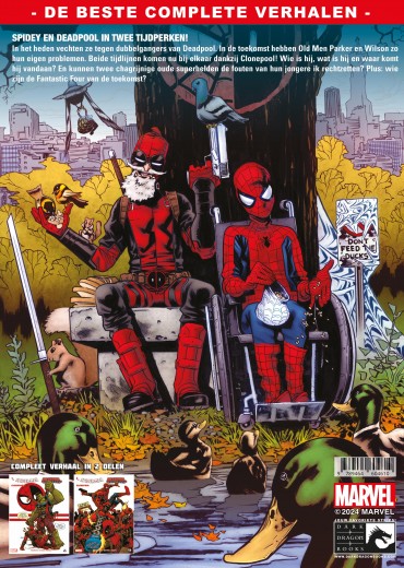 Spidey en Deadpool slaan de handen ineen in twee tijdperken! In het heden worden ze geplaagd door Deadpool dubbelgangers, terwijl in de toekomst Old Men Parker en Wilson hun eigen problemen hebben! Deze twee tijdlijnen staan op het punt te botsen, dankzij Clonepool! Wie is hij, wat is hij en waar komt hij vandaan? En hebben twee mopperige oude helden een kans om de fouten van hun jongere zelf recht te zetten wanneer ze ook geconfronteerd worden met tientallen Doppelpools? Ondertussen hebben de acties van ons duo in het heden ernstige gevolgen. Serieus, gevolgen van het kaliber ‘Oorlog-met-alle-superhelden-van-het-Marvel-Universe’. Spider-Man Deadpool, Clonepool Tekst: Robbie Thompson Tekeningen: Scott Hepburn Clonepool ISBN 9789464604610 Softcover 64 blz.